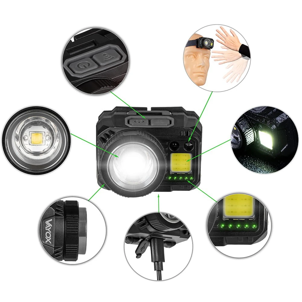 Latarka czołowa XPG3 + COB zoom hybrydowe zasilanie VA0098 Vayox