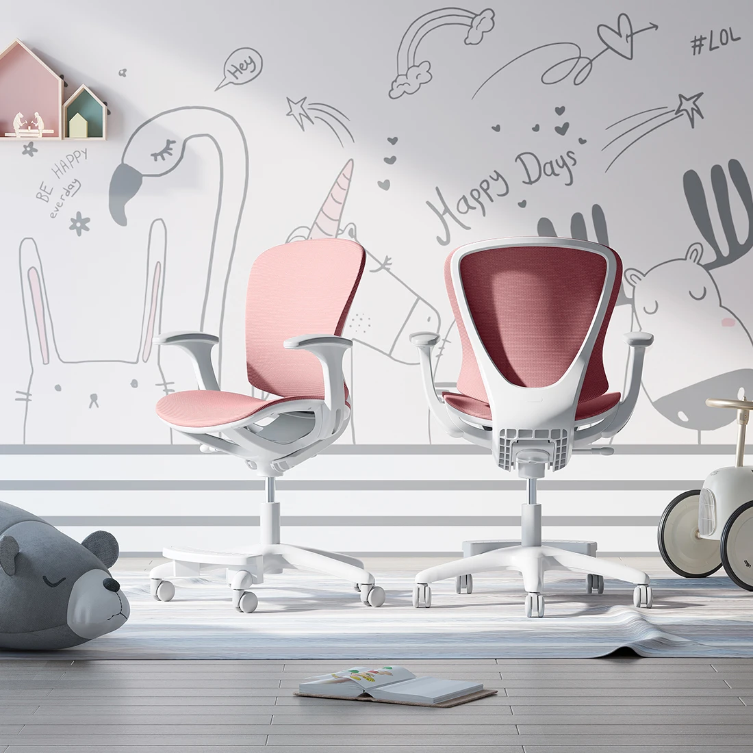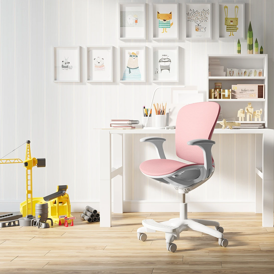 Podłokietniki zostały zaprojektowane z myślą o maksymalnym komforcie i wsparciu dla dziecka. Ergonomiczny kształt pozwala na utrzymanie prawidłowej pozycji rąk, co wspiera zdrową postawę i redukuje napięcie mięśniowe w ramionach i barkach.