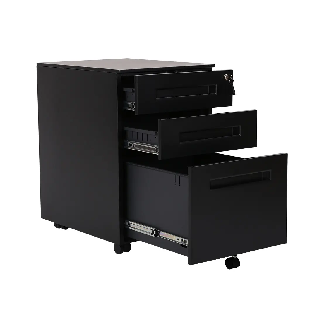 Schludna, dobrze zorganizowana przestrzeń w biurze to absolutna konieczność. Mobilny kontenerek pod biurko to idealne rozwiązanie do przechowywania dokumentów i artykułów biurowych. Wszystko, co potrzebujesz, masz pod ręką. Idealnie nadaje się zarówno do domowego biura, jak i firmy. Szafka jest wykonana z najwyższej stali malowanej proszkowo, co przekłada się na wyjątkową wytrzymałość i stabilność - rozwiązanie na lata. Prosty, nowoczesny design sprawia, że szafka doskonale pasuje do każdego wnętrza. Centralny zamek to gwarancja bezpieczeństwa. Przechowuj dokumenty i wartościowe przedmioty w jednej z zamkniętych szuflad. Dzięki zintegrowanym kółkom można ją w łatwy sposób przemieszczać. Szafka jest prawie gotowa do użycia, wystarczy, że zamonutujesz kółka (nie potrzebujesz do tego żadnych narzędzi).