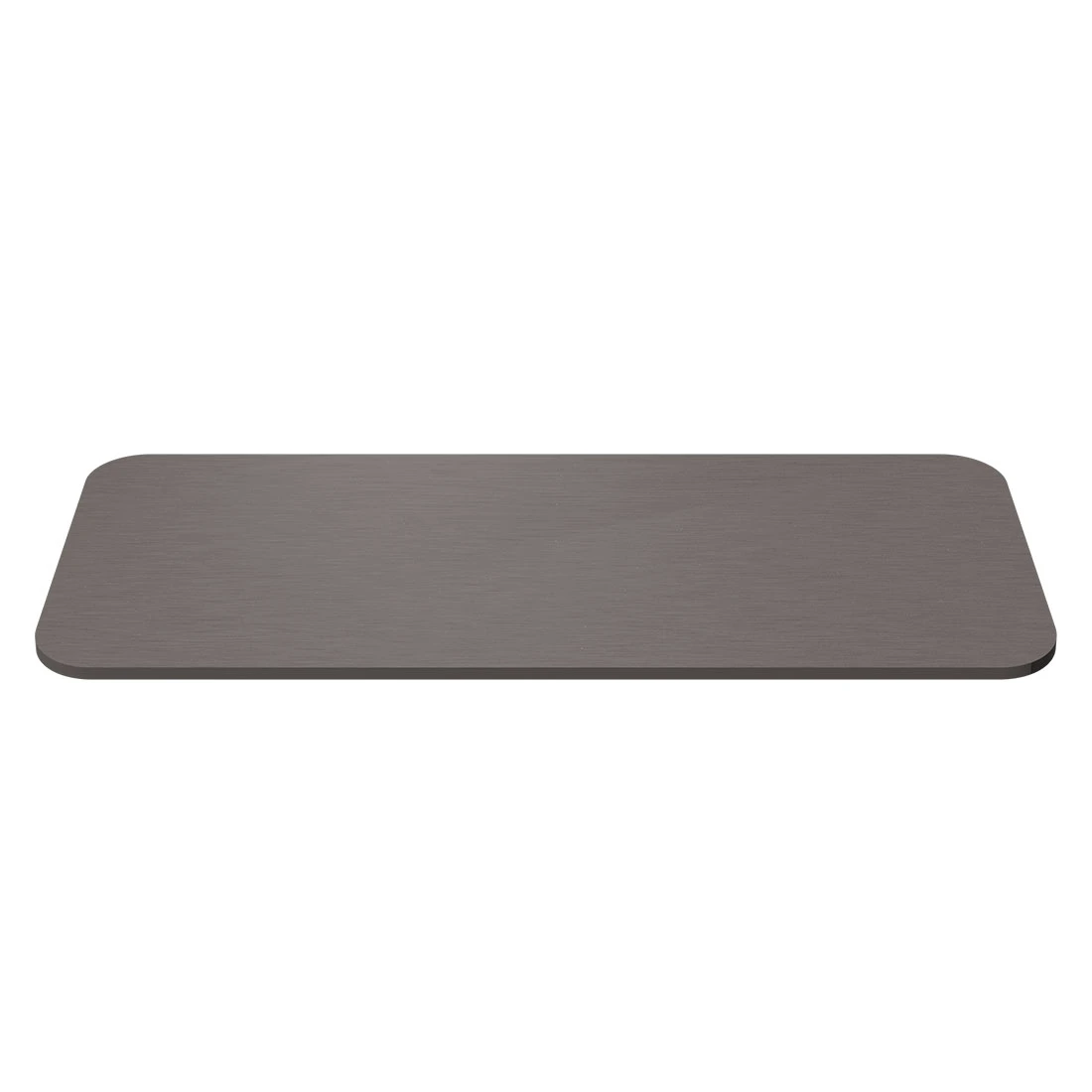 Solidny uniwersalny blat 120x60 cm do biurka lub stołu wykonany z wysokiej jakości płyty obustronnie laminowanej o grubości 18 mm. Posiada zaokrąglone narożniki i jest zabezpieczony obrzeżami z ABS. W połączeniu z elektrycznym stelażem biurkowym stanowi ergonomiczne i nowoczesne wyposażenie miejsca pracy, zarówno w domu, jak i przestrzeni biurowej. Dekor Tytan Srebrzysty jest wyjątkowy w naszej ofercie. Zdjęcia nie oddają pełni jego charakteru. Wzór jest dosyć gładki i szary, o delikatnym odcieniu tytanu. Powierzchnia jest pokryta srebrzystą farbą, która odbija i rozprasza światło, co przypomina właściwości metalu.