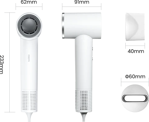 Roidmi Miro to nie tylko potęga, ale także lekkość w Twoich rękach. Z wagą zaledwie około 315g, ta suszarka jest zdecydowanie lżejsza niż suszarka Dyson, co sprawia, że jest łatwiejsza w obsłudze, a jednocześnie oferuje wszystkie zalety potężnego urządzenia do pielęgnacji włosów.