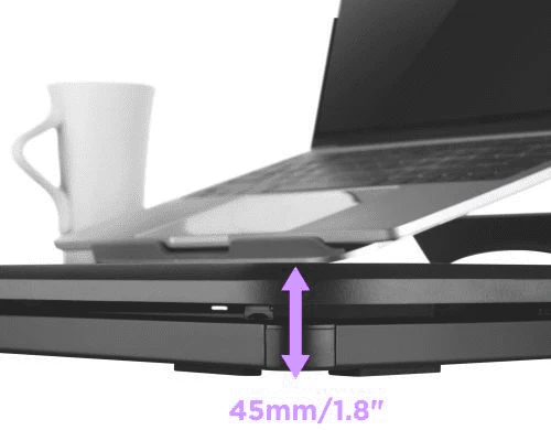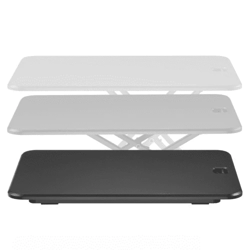 Nadstawka na biurko SPR-212MB cechuje się ultra cienką budową. Grubość po złożeniu wynosi tylko 45 mm. Z tego 15 mm to sam blat nadstawki. Dzięki temu, gdy nie korzystasz z nadstawki, nie będzie ona przesadnie rzucała się w oczy. Jej stylowy wygląd sprawi, że nie będziesz musiał wybierać pomiędzy komfortem pracy a wyglądem Twojego pokoju.