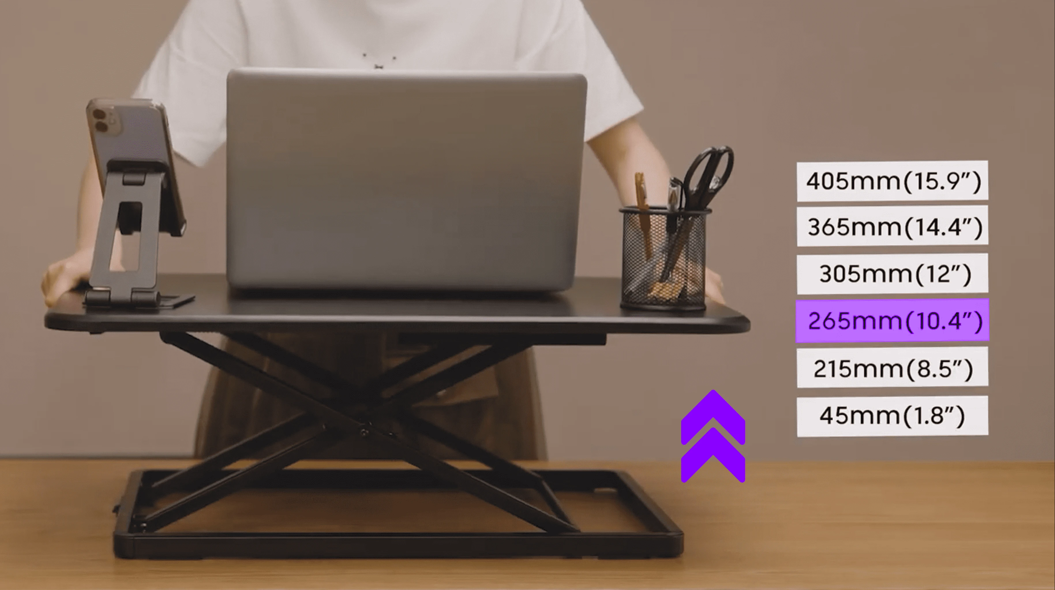 Podstawka pod laptopa SPR-212MB zapewnia Ci 6 poziomów wysokości. Wszystko po to, żebyś mógł ją dopasować idealnie do swoich potrzeb. Dzięki temu będziesz mógł ze spokojem siedzieć i oglądać ulubiony serial przy opuszczonej podstawce. Tylko po to, by po zakończonym seansie ją unieść. W spokoju będziesz mógł popracować na stojąco nad esejem na studia. Korzystaj ze wszystkich zalet, jakie daje praca stojąco-siedząca (Sit-Stand).