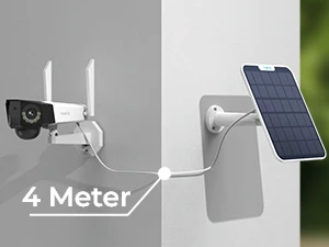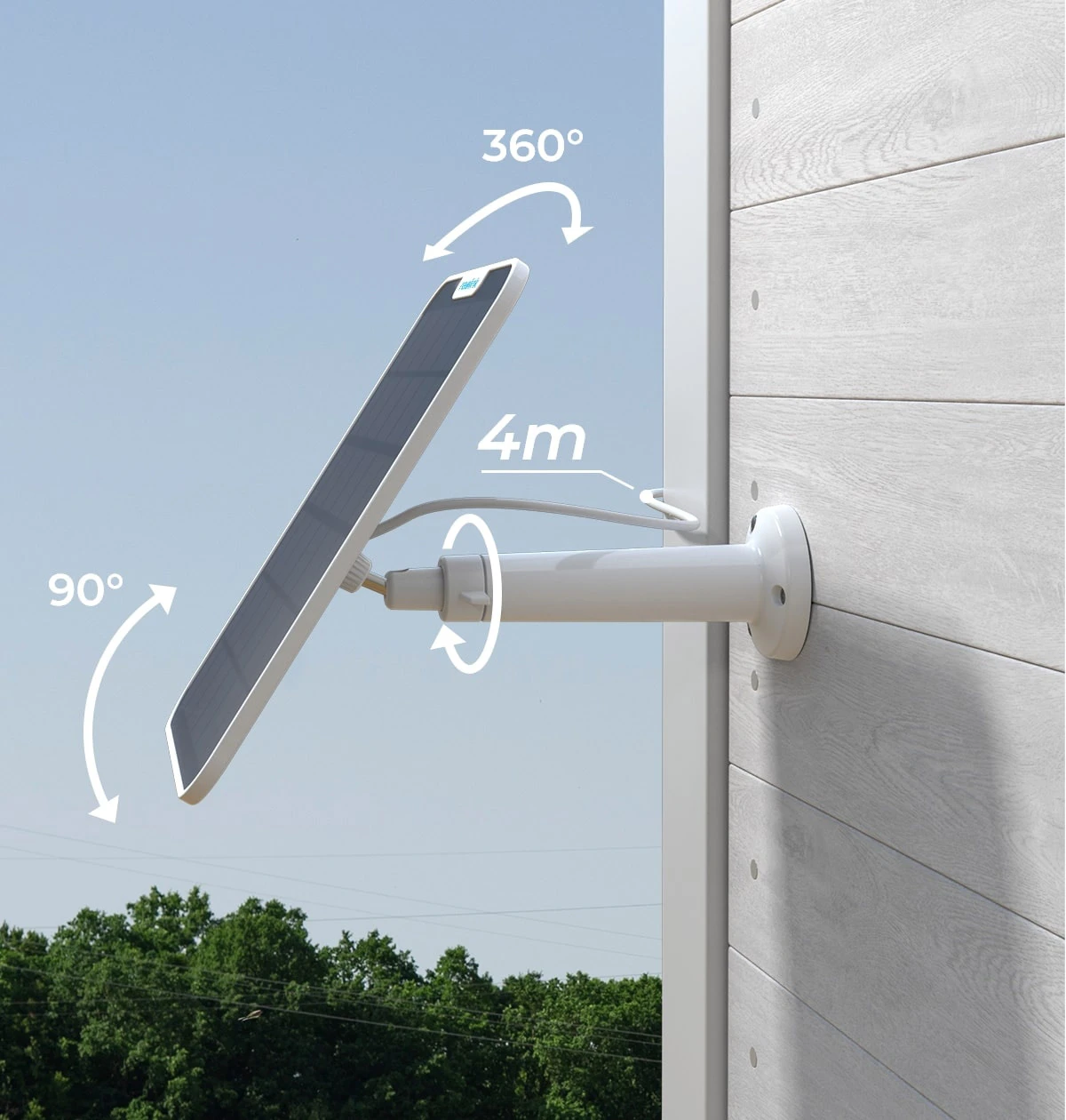 Długi kabel o długości 4 metrów zapewnia dodatkową elastyczność podczas instalacji. Użytkownicy mogą swobodnie rozmieścić panel solarny i kamerę, nawet jeśli miejsce instalacji jest oddalone od źródła światła słonecznego. To ułatwia optymalne dostosowanie do warunków otoczenia.