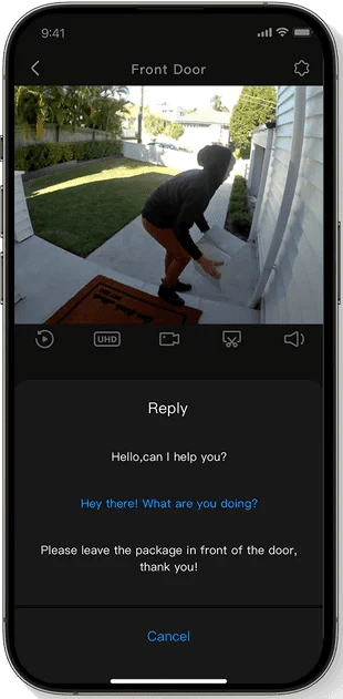 Obsługa kamery odbywa się za pomocą aplikacji na Twoim telefonie. Będziesz otrzymywał powiadomienia z miniaturkami, gdy przed Twoim domem wydarzy się coś istotnego. Będziesz mógł na te wydarzenia szybko odpowiedzieć za pomocą przygotowanej wcześniej odpowiedzi szybkiego wyboru. Za pomocą funkcji szybkiego przeglądania, będziesz w stanie zobaczyć co działo się w oku kamery. Kamera sama podzieli różne wydarzenia z dnia na odpowiednie kategorie, by jeszcze bardziej ułatwić Ci przeglądanie.
