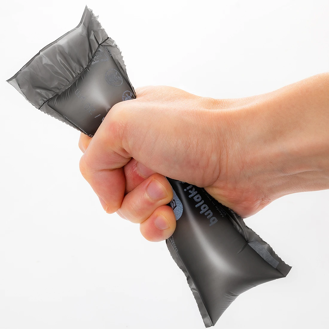 Poduszki powietrzne Bublaki B2007 w kolorze czarnym wypełniają puste przestrzenie pozostające w paczce, co sprawia, że zawartość nie przemieszcza się podczas transportu. Dzięki swojej wytrzymałości i prostej konstrukcji gwarantują niezawodną ochronę produktów zarówno tych lekkich, jak i średnio ciężkich. Można nimi wypełnić różnorodne towary - począwszy od leków, kosmetyków, przez produkty podatne na uszkodzenia, np. szkło, aż po elektronikę. Zabezpieczają niezależnie od temperatury oraz poziomu wilgotności. Odporność poduszek na obciążenie przekłada się na doskonałą amortyzację - redukują do minimum wstrząsy, uderzenia, a nawet hałasy.