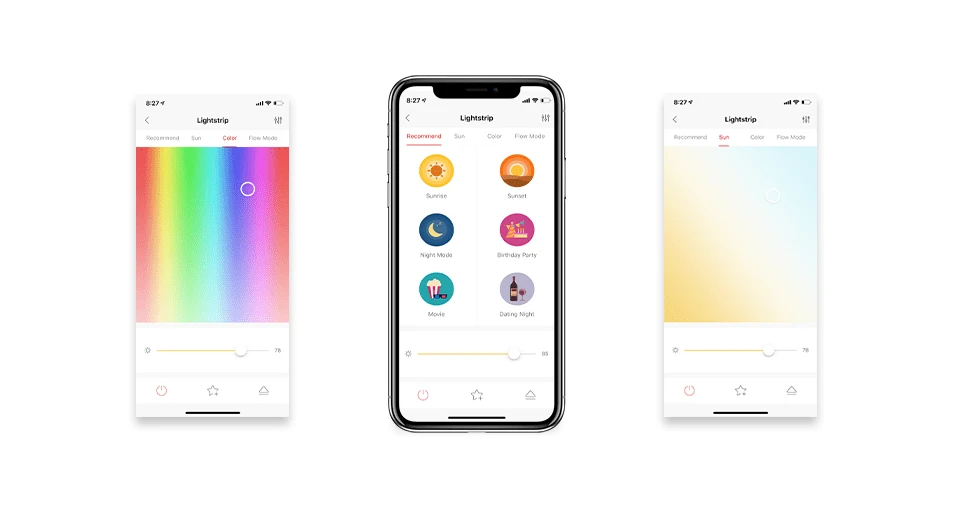 Taśma LED Yeelight Lightstrip pozwala Ci na dowolne ustawienie koloru pod Twoje preferencje. Możesz z łatwością ustawić swój ulubiony kolor. Jeżeli szukasz jednak większych przeżyć, to możesz zsynchronizować kolory z odtwarzaną w tle muzyką. Spraw, by Twoje wnętrze było jedyne w swoim rodzaju.