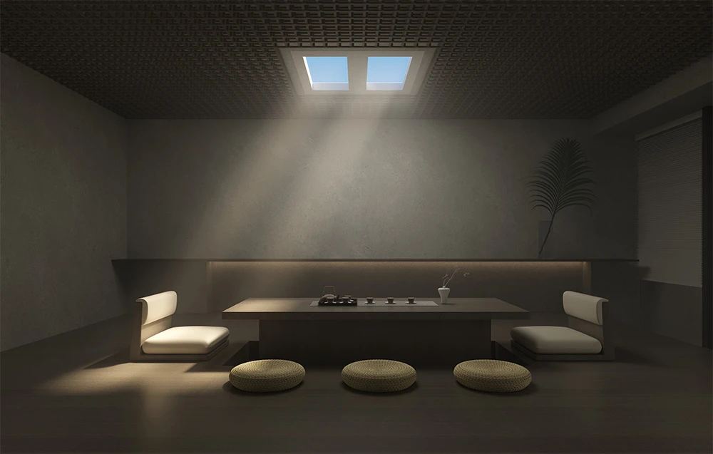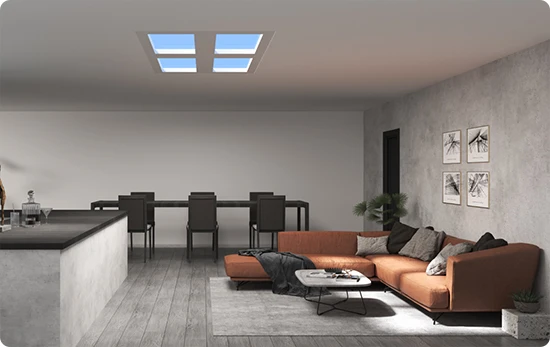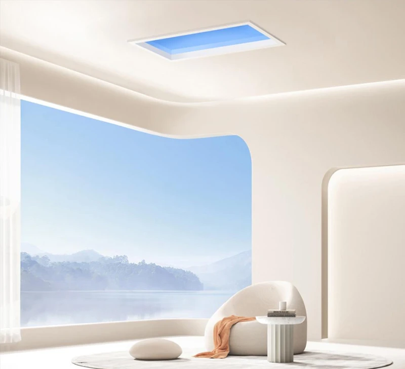 Yeelight Rooflight P21 stanowi idealne rozwiązanie dla miejsc, gdzie brak możliwości zamontowania okien utrudnia dostęp do naturalnego światła. Dzięki innowacyjnej technologii Forward Projection oraz zdolności imitowania promieni słonecznych pod kątem 30°, ten inteligentny panel świetlny doskonale symuluje efekt naturalnego oświetlenia, wnosząc do przestrzeni bez okien wyjątkową atmosferę.