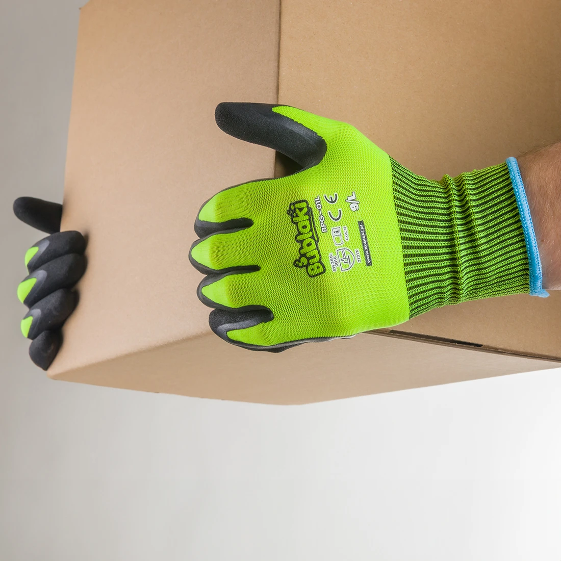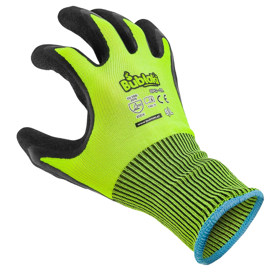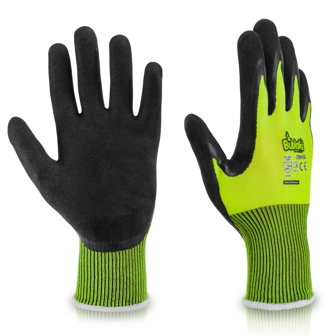 Model BPG-01 charakteryzuje się wykonaniem z wytrzymałego poliestru, co gwarantuje trwałość i elastyczność. Dwukrotna powłoka z lateksu zastosowana na rękawicach zapewnia podwójną ochronę, chroniąc dłonie przed różnorodnymi zagrożeniami. Certyfikaty EN ISO 21420:2020 oraz EN 388:2016 + A1:2018 potwierdzają zgodność rękawic z najwyższymi normami bezpieczeństwa.