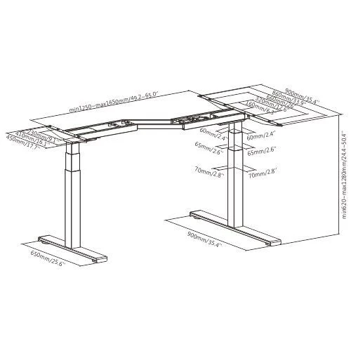 Elektryczne biurko oprócz regulacji wysokości posiada regulację poziomą. Oznacza to, że możesz wybrać blat, który najbardziej Ci odpowiada.