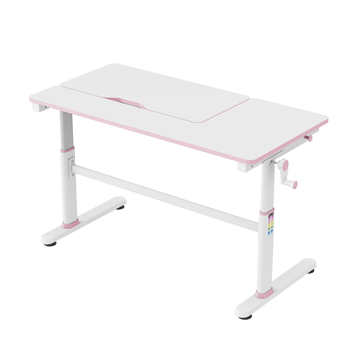 Dzieci mogą łatwo dostosować wysokość biurka do swoich potrzeb, korzystając z lekkiej i płynnej ręcznej korby, która nie jest montowana na stałe - można ją wyjąć zaraz po dostosowaniu wysokości. Wysokość blatu jest regulowana w zakresie od 54 cm do 76 cm. W praktyce to oznacza, że użytkownikiem biurka może być zarówno sześciolatek, jak i uczeń szkoły podstawowej.