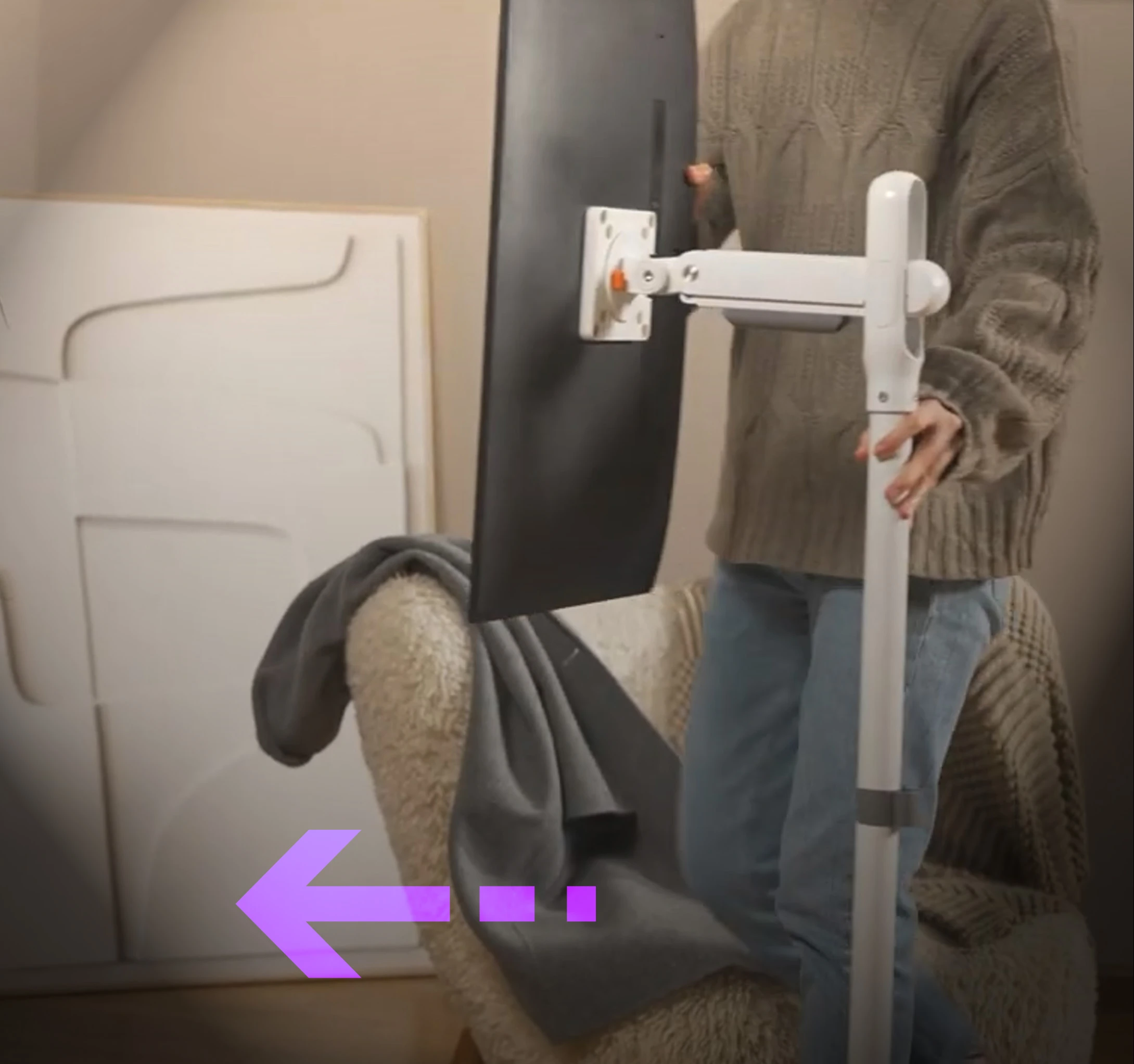 Z uwagi na mobilność uchwytu SPE-T01W, trzeba spodziewać się tego, że monitor powieszony na nim będzie cały czas znajdował się w zmieniających się warunkach świetlnych. Dlatego też ramię uchwytu pozwala Ci na pełną kontrolę ustawienia monitora. Zyskujesz tę możliwość poprzez dostosowanie jego pozycji o 90 stopni w każdym kierunku. Dzięki temu będziesz mógł zawsze dowolnie dopasować położenie ekranu. Dostosujesz je idealnie do aktualnie padającego na monitor światła.