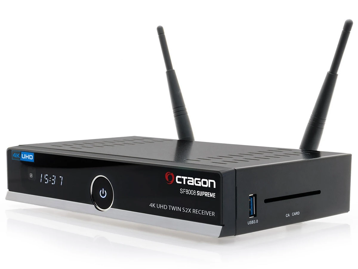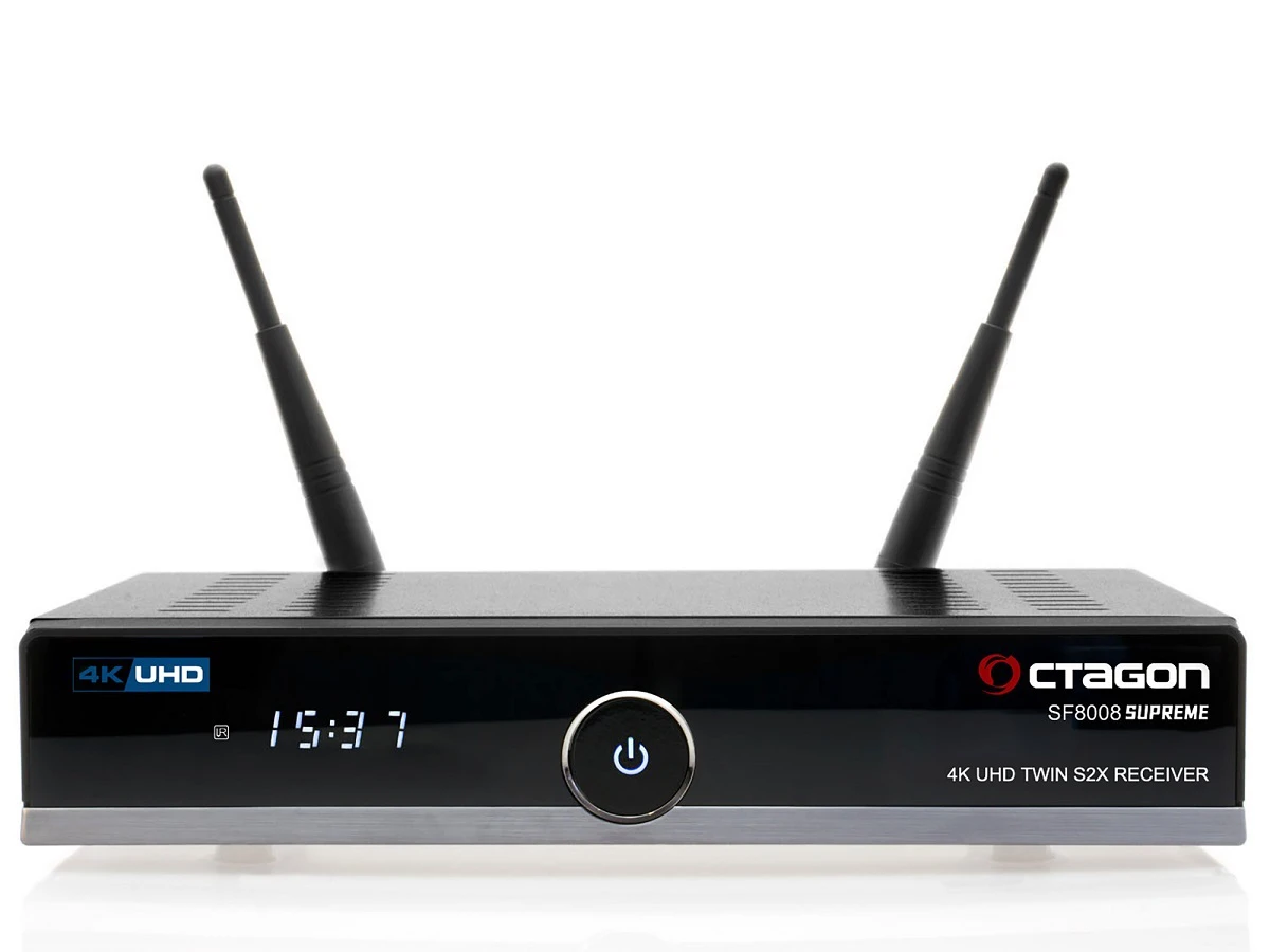 Odbiornik Octagon SF8008 SUPREME 4K UHD posiada dwa zintegrowane tunery satelitarne DVB-S2X. Dzięki imponującej wydajności (15 000 DMIPS) i błyskawicznym czasom przełączania oferuje wyjątkowe wrażenia użytkownika.