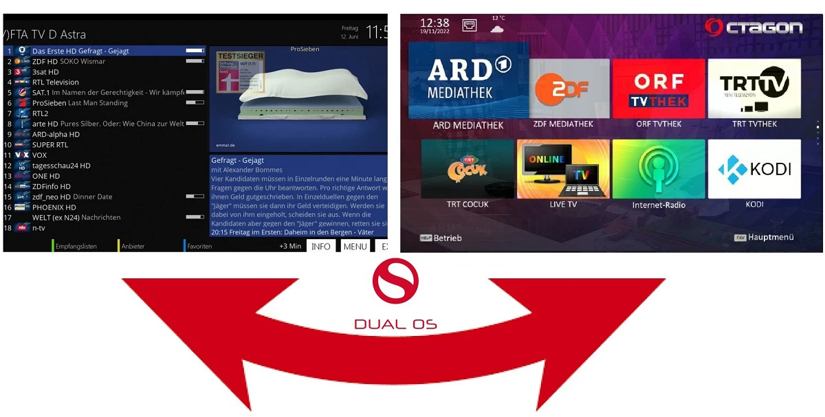 - DUAL OS: system operacyjny E2 Linux OS i OCTAGON Define Linux OS