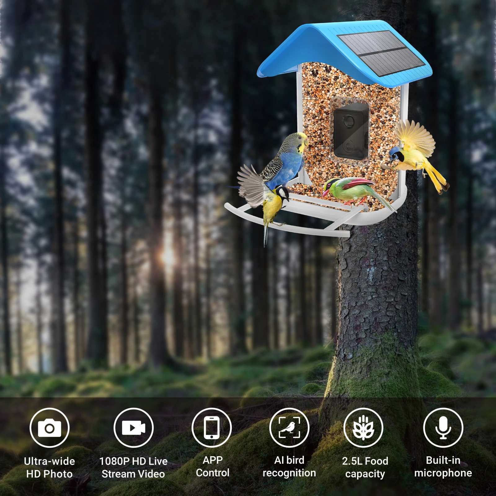 - Wysokiej Jakości Kamera 1080P: Umożliwia rejestrowanie wideo oraz robienie szczegółowych zdjęć odwiedzających ptaków.