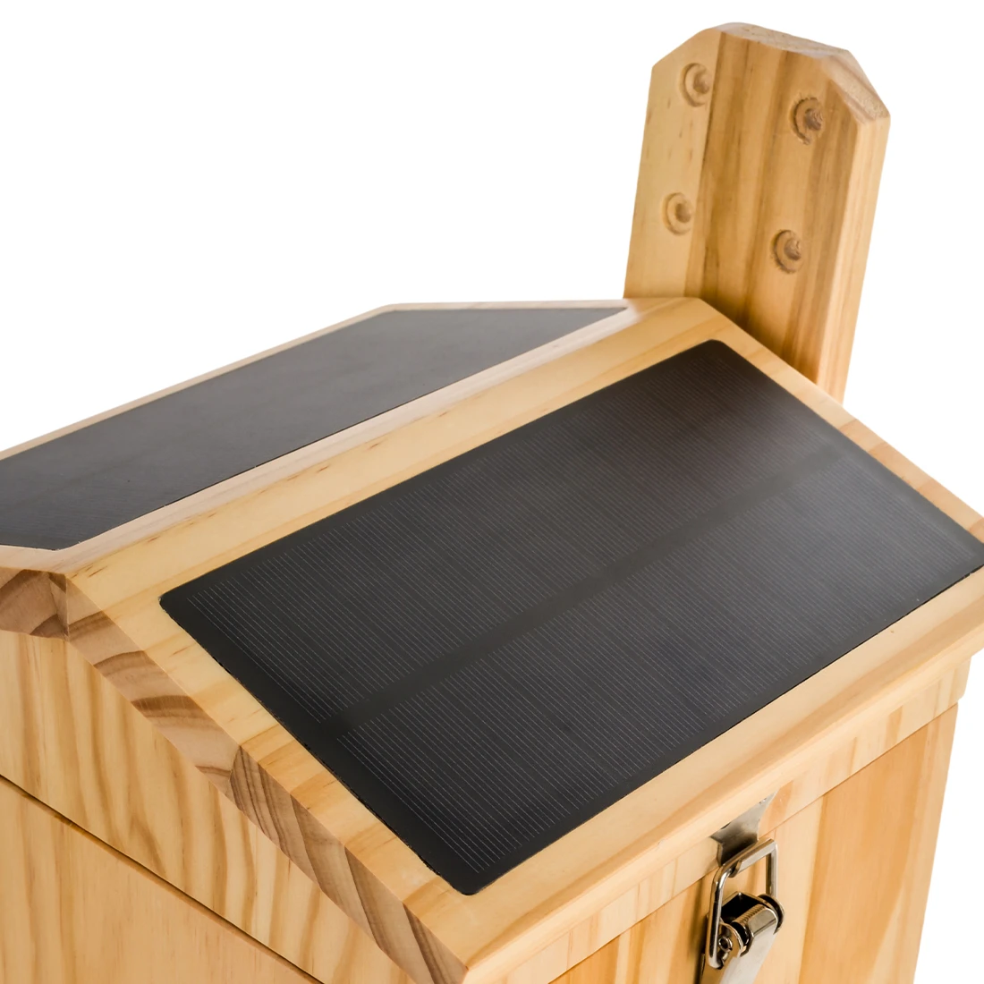 Wyposażona w panel słoneczny umieszczony na dachu, budka lęgowa Spacetronik SP-BF01 oferuje samowystarczalne i przyjazne środowisku rozwiązanie energetyczne. Panel solarny efektywnie gromadzi energię słoneczną, zasilając wbudowany akumulator litowo-jonowy o pojemności 5200 mAh. Ta kombinacja zapewnia nieprzerwaną pracę kamery, nawet w mniej słoneczne dni, eliminując potrzebę regularnego ładowania i zmniejszając ślad węglowy urządzenia. Taka niezależność energetyczna sprawia, że budka jest idealna do zastosowania w różnorodnych lokalizacjach, niezależnie od dostępu do źródeł zewnętrznych zasilania.