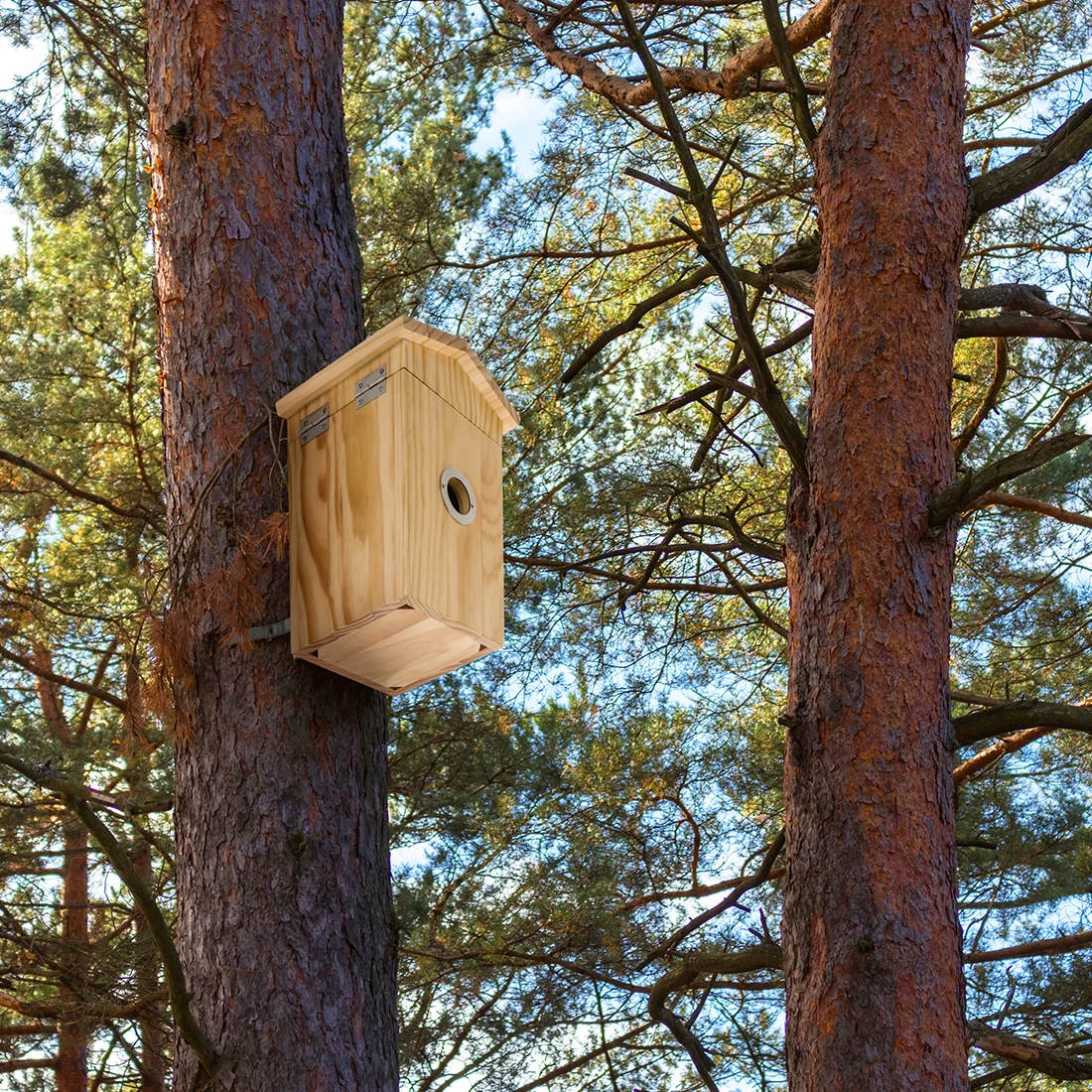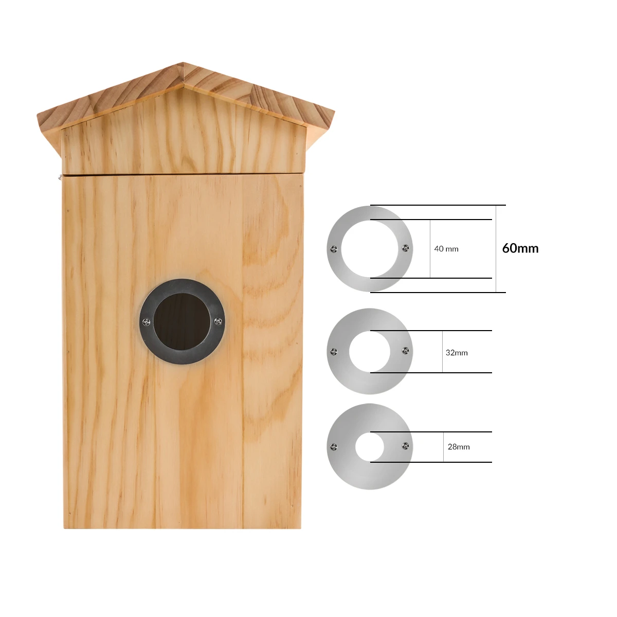 - Wymienne otwory na dużego i małego ptaka: Dostosuj wejście w zależności od gatunku ptaków jakie chcesz przygarnąć