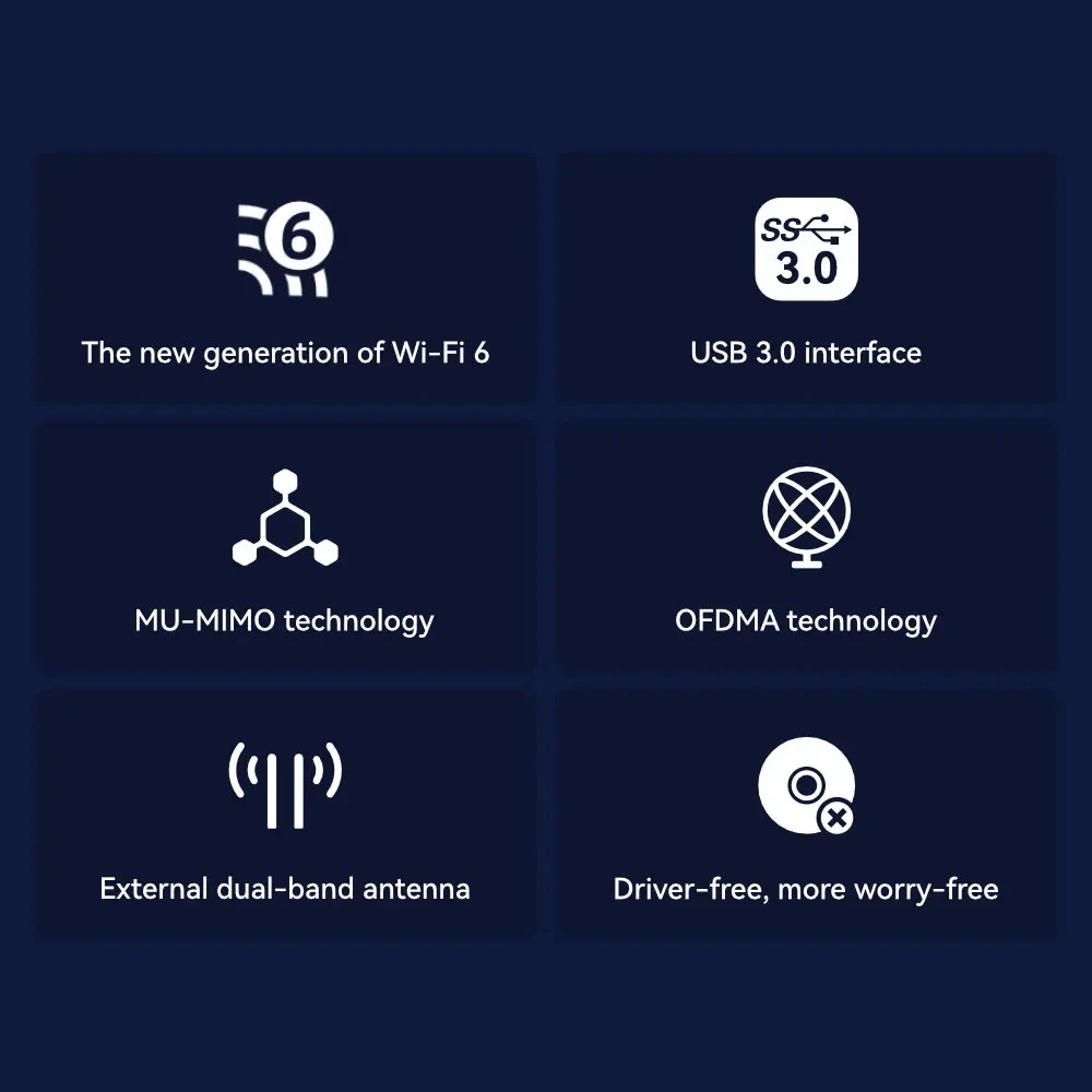 - Wsparcie standardu Wi-Fi 6 (IEEE802.11a/n/ac/ax)