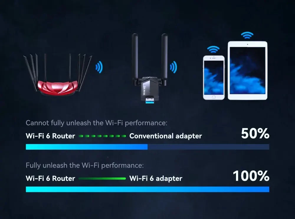 Warto podkreślić, że zastosowanie zwykłej karty sieciowej nieobsługującej najwyższego standardu w konfiguracji z urządzeniami obsługującymi standard WiFi 6 może skutkować znacząco mniejszymi osiągami prędkości oraz niepełnym wykorzystaniem potencjału innych urządzeń. W przypadku korzystania z karty niekompatybilnej z WiFi 6, użytkownicy mogą doświadczać ograniczeń w przepustowości, co wpływa negatywnie na efektywność korzystania z sieci.