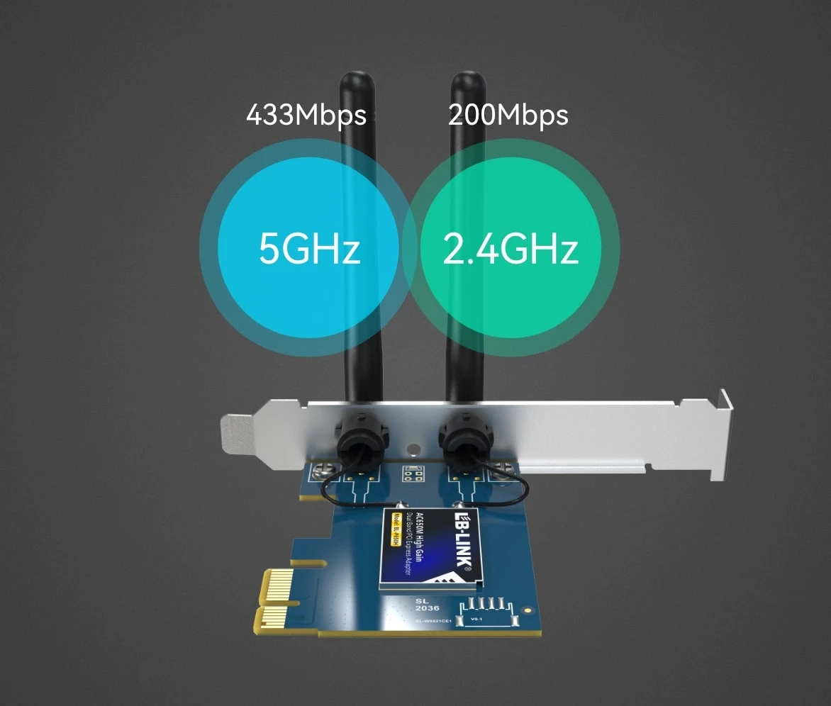 Karta sieciowa wewnętrzna do komputera PCI-E Adapter 650 Mbps Dual Band odbiornik WiFi LB-Link BL-P650H