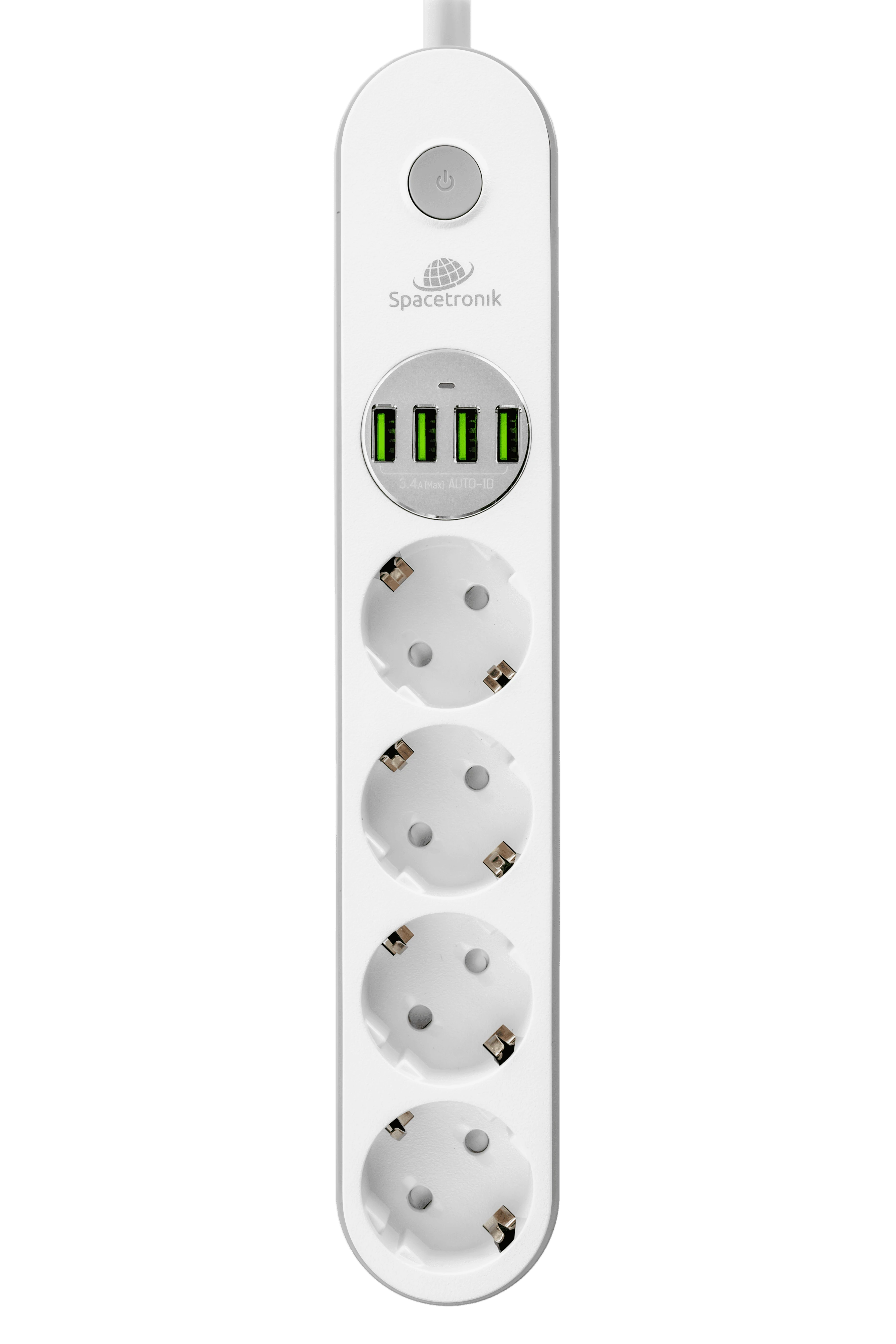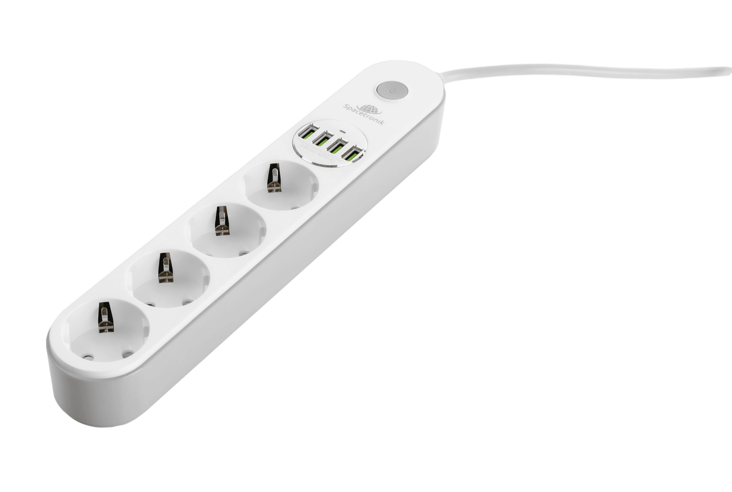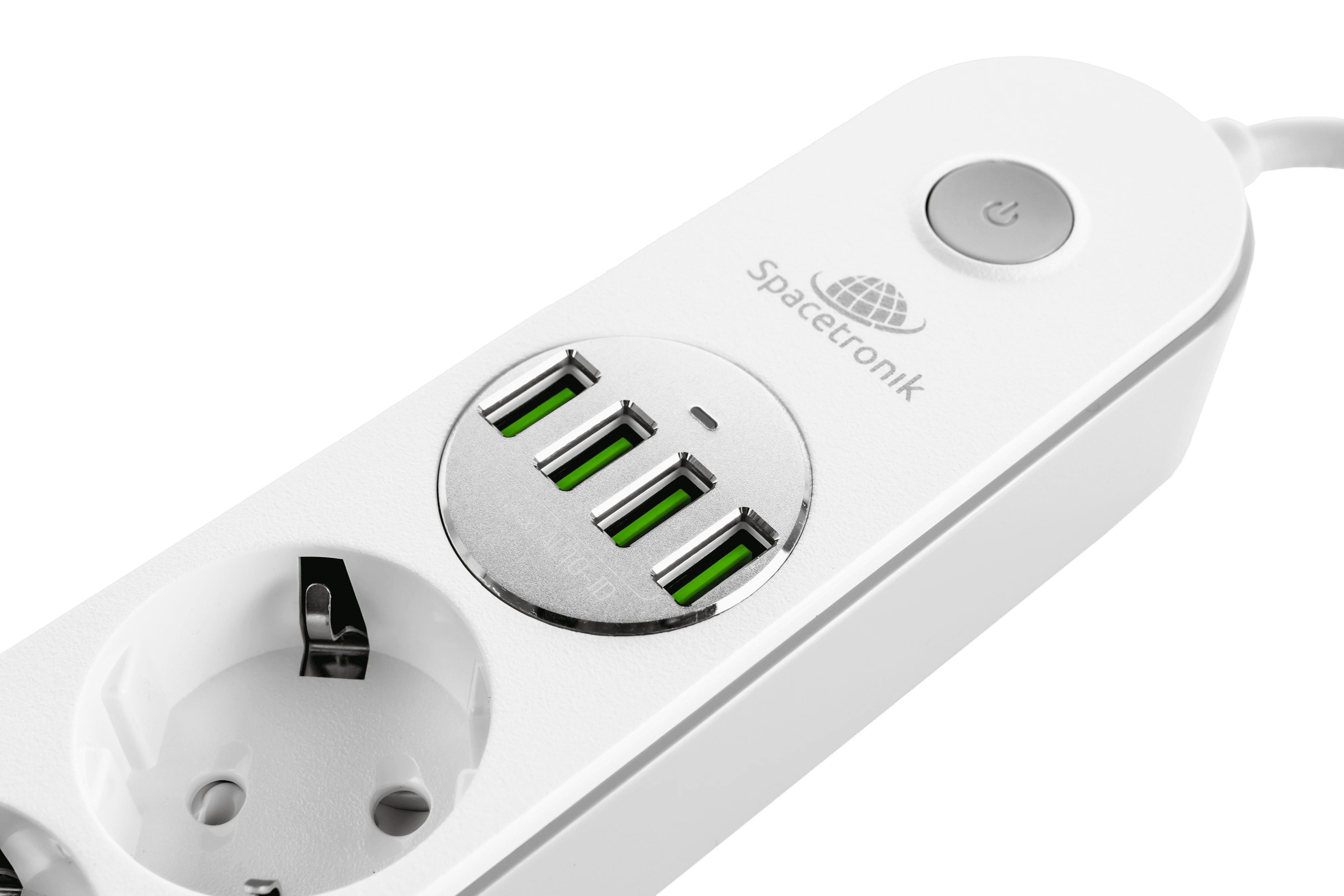 Uniwersalność ładowarki Spacetronik SR-203 zwiększają jeszcze bardziej 4 wbudowane porty USB-A. Dzięki temu będziesz w stanie podładować wszystkie swoje urządzenia akumulatorowe. Niezależnie od tego, czy to telefon, tablet, laptop czy też pad do konsoli. Dodając do tego 4 porty AC, zyskujesz możliwość ładowania nawet do 8 urządzeń elektronicznych. Wszystko po podłączeniu listwy do gniazdka. Listwa zasilająca Spacetronik SR-203 zapewnia Ci 8 razy więcej możliwości niż zwykłe gniazdko zasilania.