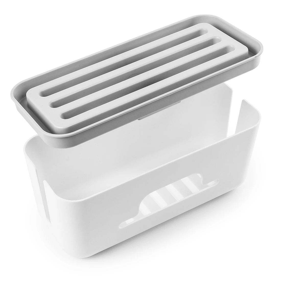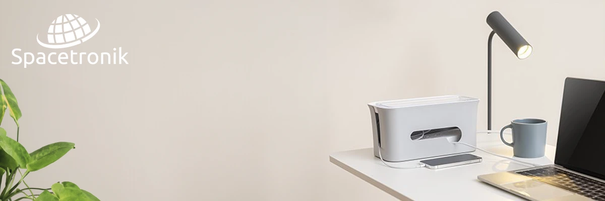 Każdego dnia korzystamy z wielu urządzeń elektrycznych. Musimy, więc zaakceptować fakt, że w naszym domu znajduje się duża liczba kabli. Są one konieczne do tego, by nasze urządzenia prawidłowo działały. Jednak nie da się ukryć, że wpływa to negatywnie na wystrój naszego domu. Jednak z rozwiązaniem tego problemu przychodzi Ci organizer na kable Spacetronik SR-202. Będziesz w stanie schować do niego całą listwę zasilającą przez wycięte w pudełku otwory. Pudełko ma minimalistyczny wystrój, więc bez problemu wpasuje się w każde wnętrze. Organizer na górze ma wgłębienia do przechowywania telefonu lub tabletu.