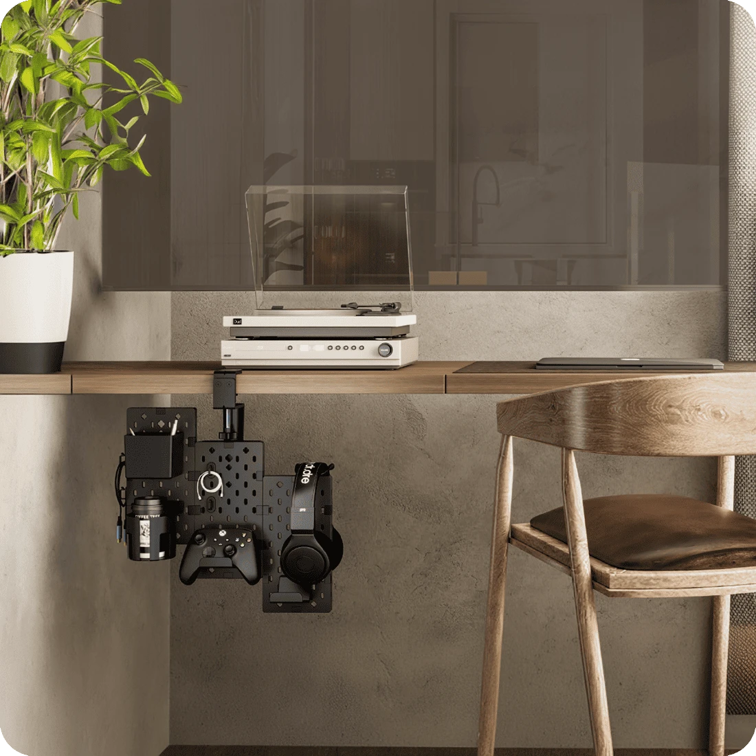 Uchwyt Spacetronik SPB-153B jest nieodłącznym elementem biurka każdego gracza. Można zamontować go zarówno nad biurkiem, jak i pod biurkiem. Modułowa budowa pozwoli Ci dostosować go do swojej przestrzeni. Dzięki temu będziesz mógł zawsze mieć swoje najpotrzebniejsze akcesoria pod ręką.