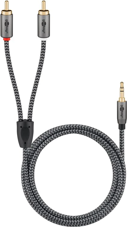 Kabel audio Jack 3,5mm - 2x RCA z serii Goobay Plus w oplocie tekstylnym