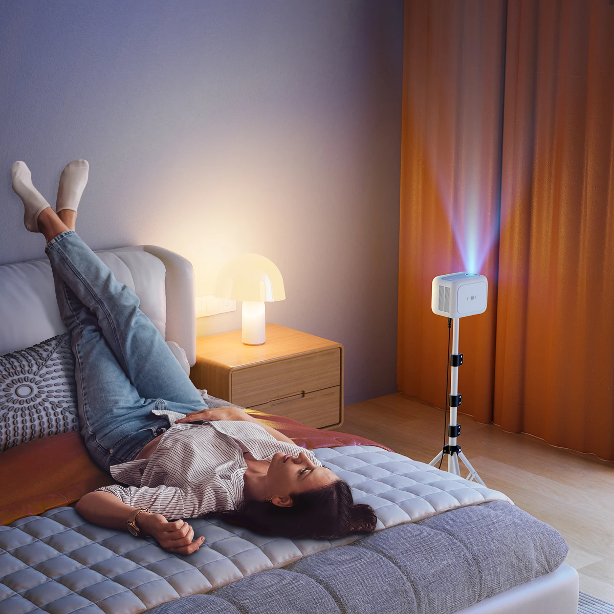 - Regulacja Kąta: 360 stopni w poziomie dla pełnej swobody obrotu, 90 stopni w pionie dla optymalnego kąta projekcji.