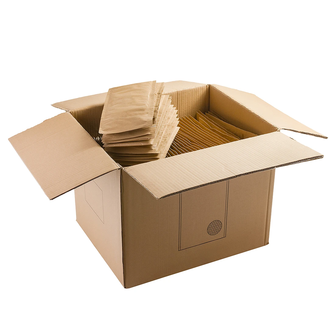 Dwuwarstwowa konstrukcja z papieru amortyzującego o gramaturze 80 g/m2 pokrytego papierem kraftowym 80 g/m2 zapewnia solidną ochronę przed uszkodzeniami mechanicznymi podczas transportu