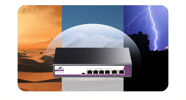 Przełączniki Ethernet zostały zaprojektowane z obsługą szerokiej temperatury, aby zapewnić niezawodność działania w temperaturach od -10ºC do 50ºC. Wykonana z wysokiej jakości metalowej obudowy, wytrzymała i trwała, o długiej żywotności, zapewnia lepsze rozpraszanie ciepła, odpowiednia dla większości środowisk.