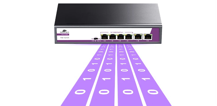 - 4*10/100M porty POE + 2*10/100M Ethernetowe porty Uplink