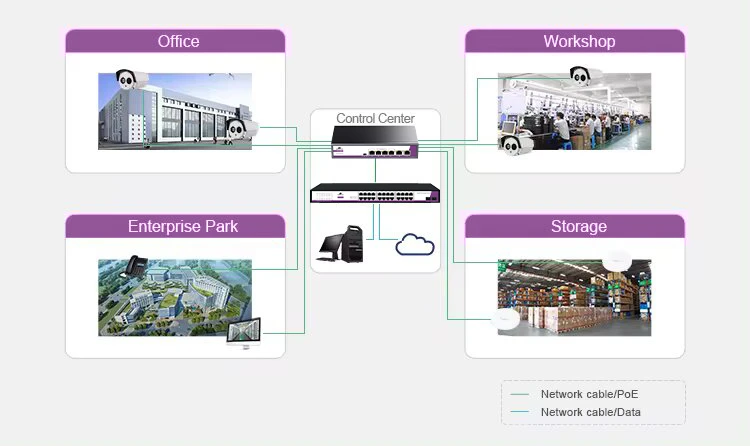 Power over Ethernet (w skrócie PoE) to technologia przesyłania zasilania przez kabel ethernet. Dzięki temu możemy jednocześnie zasilić urządzenie i zapewnić wymianę informacji. Technologia PoE jest szczególnie popularna w przypadku kamer IP, telefonów VoIP, punktów dostępu do internetu (Access Point) i terminali POS. Urządzenia sieciowe wykorzystujące PoE są wygodne w użyciu, przez co są lubiane przez instalatorów. Biorąc na przykład sieć monitoringu - normalnie trzeba by było ciągnąć osobno kabel zasilający i transmisyjny do każdej z kamer. Tutaj możemy wykorzystać switch, który jednocześnie zasili urządzenia, jak i prześle z nich informacje.
