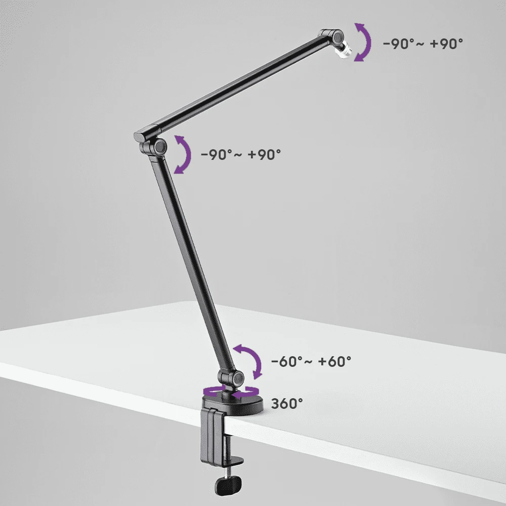 Ramię mikrofonowe Spacetronik SPA-103B dopasujesz do każdej przestrzeni. Posiada ono 3 ruchome stawy, których pozycję możesz dowolnie regulować. Dzięki temu ustawisz mikrofon dokładnie na takiej wysokości, jakiej chcesz. Bez różnicy czy chcesz wygodnie siedzieć w fotelu, czy prowadzić rozmowę na stojąco. Statyw do mikrofonu Spacetronik SPA-103B Pozwoli Ci zachować komfort użytkowania. Do biurka przymocujesz go za pomocą prostego w użyciu zacisku. Dzięki temu z łatwością odczepisz uchwyt od biurka i przymocujesz go w innym miejscu, gdy będziesz miał taką ochotę. Wszystko bez pozostawiania śladu użytkowania na Twoim blacie, dzięki ochronnym podkładkom.