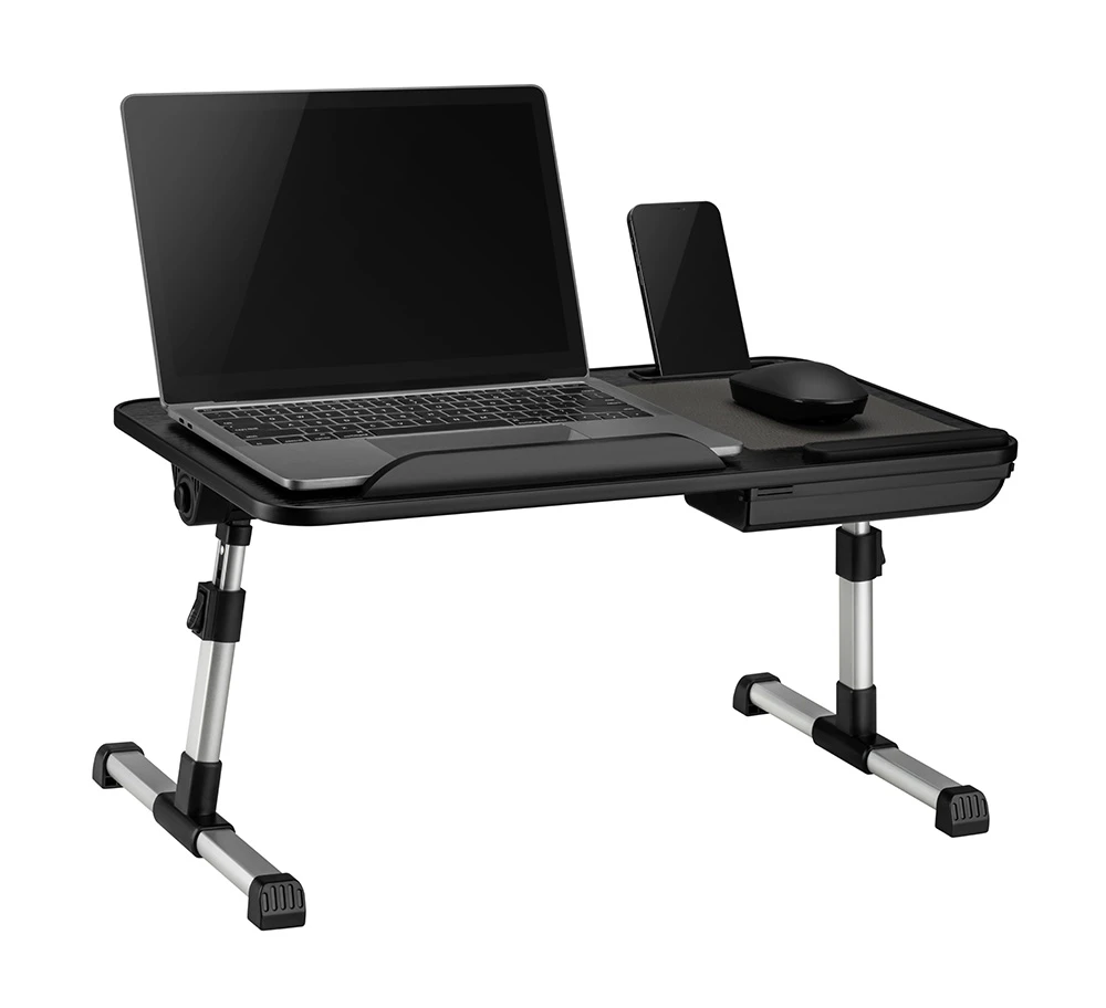 Z uwagi na fakt, że stolik regulowany SPR-Beddy S został zaprojektowany z myślą o tym, żebyś mógł go wykorzystywać jako podstawkę pod laptopa, jest on wyposażony w podkładkę pod myszkę, żebyś mógł korzystać z pełni możliwości swojego komputera bez obawy o porysowanie stolika. Co więcej, wyciągana szuflada zapewni Ci przestrzeń, chociażby dla Twojego telefonu, a nowe zatrzaskowe przyciski pozwalają na szybszą regulację pochyłu i wysokości, niż korbki, często stosowane w tego rodzaju produktach. Dodatkowo warto wspomnieć, że po złożeniu stolik regulowany na łóżko SPR-Beddy S zajmuje na tyle niewiele miejsca, że możesz go schować bez problemu np. pod łóżkiem.