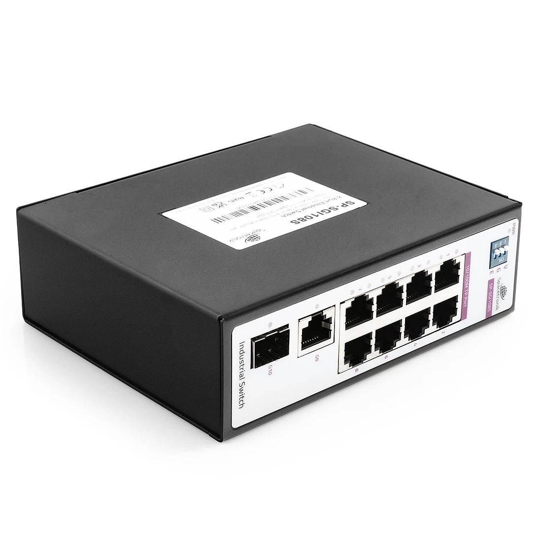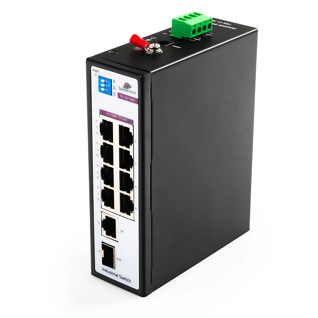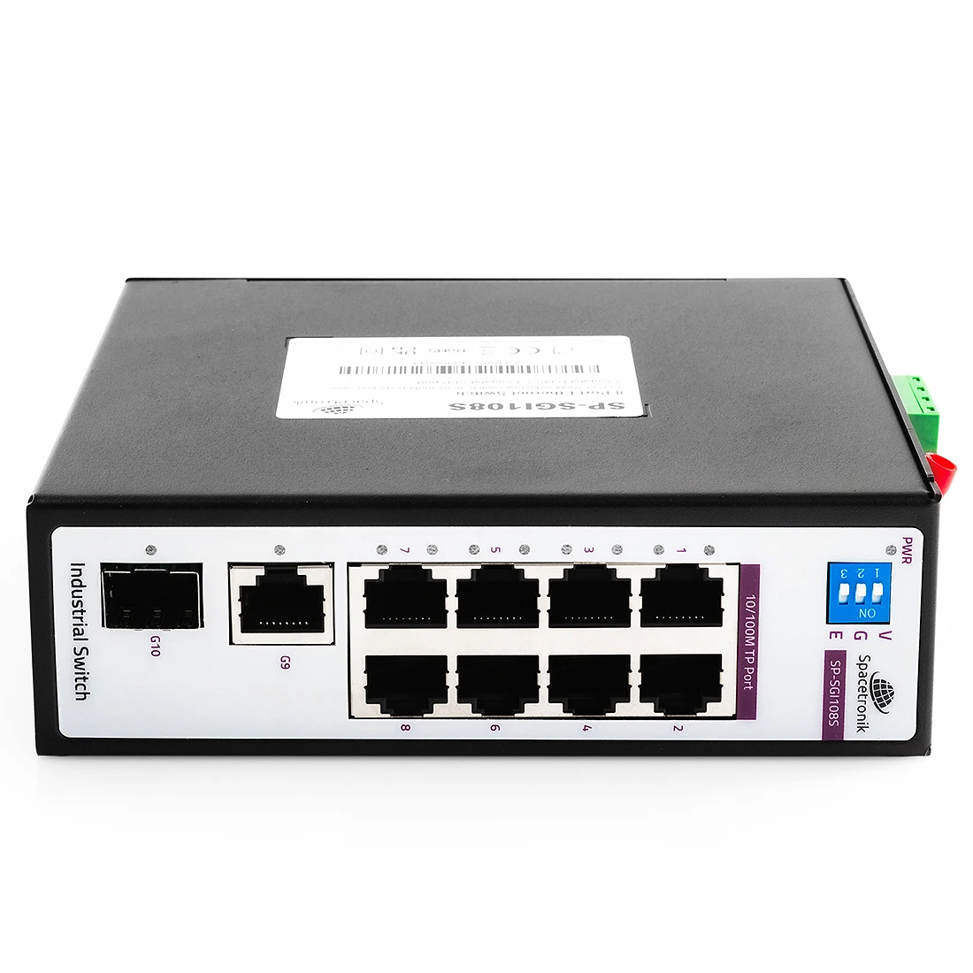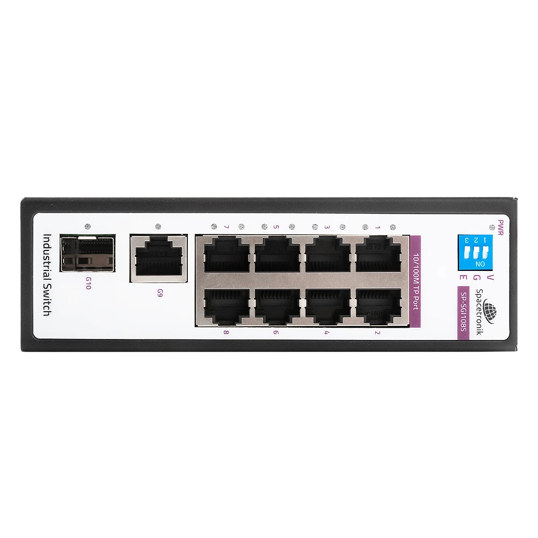 10 portowy SWITCH przemysłowy Spacetronik 8x port 10/100Mbps + 1x Uplink Ethernet port RJ45 1Gbps + 1x SFP port 1Gbps SP-SGI108S