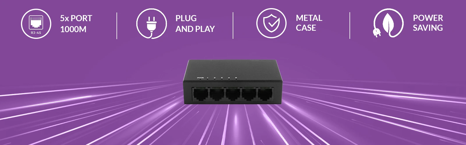 Dzięki technologii Plug&Play, nasz switch jest niezwykle łatwy w użyciu. Wystarczy podłączyć urządzenie i wszystko jest gotowe do pracy – bez konieczności dodatkowej konfiguracji sprzętu czy sieci. To rozwiązanie oszczędza Twój czas i zapewnia bezproblemowe działanie od samego początku.