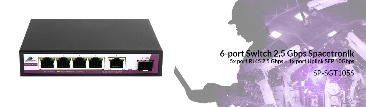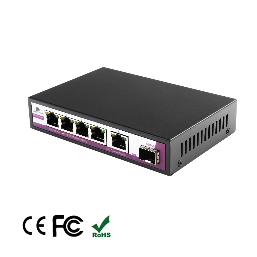 6 portowy SWITCH Spacetronik 5x port RJ45 2,5G + 1x SFP port 10G SP-SGT105S
