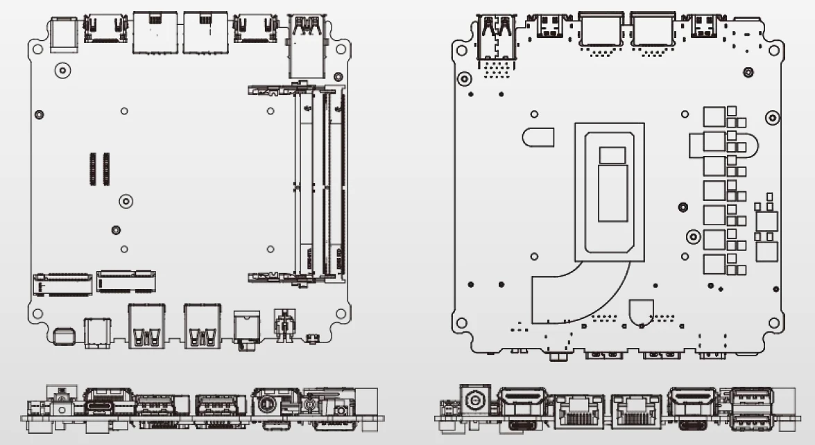 Komputer Minisforum NPB6 mimo małych wymiarów jest urządzeniem bardzo uniwersalnym. Wszystko to z uwagi na mnogość różnorakich portów znajdujących się zarówno z przodu, jak i tyłu urządzenia. Od frontu znajdziesz: