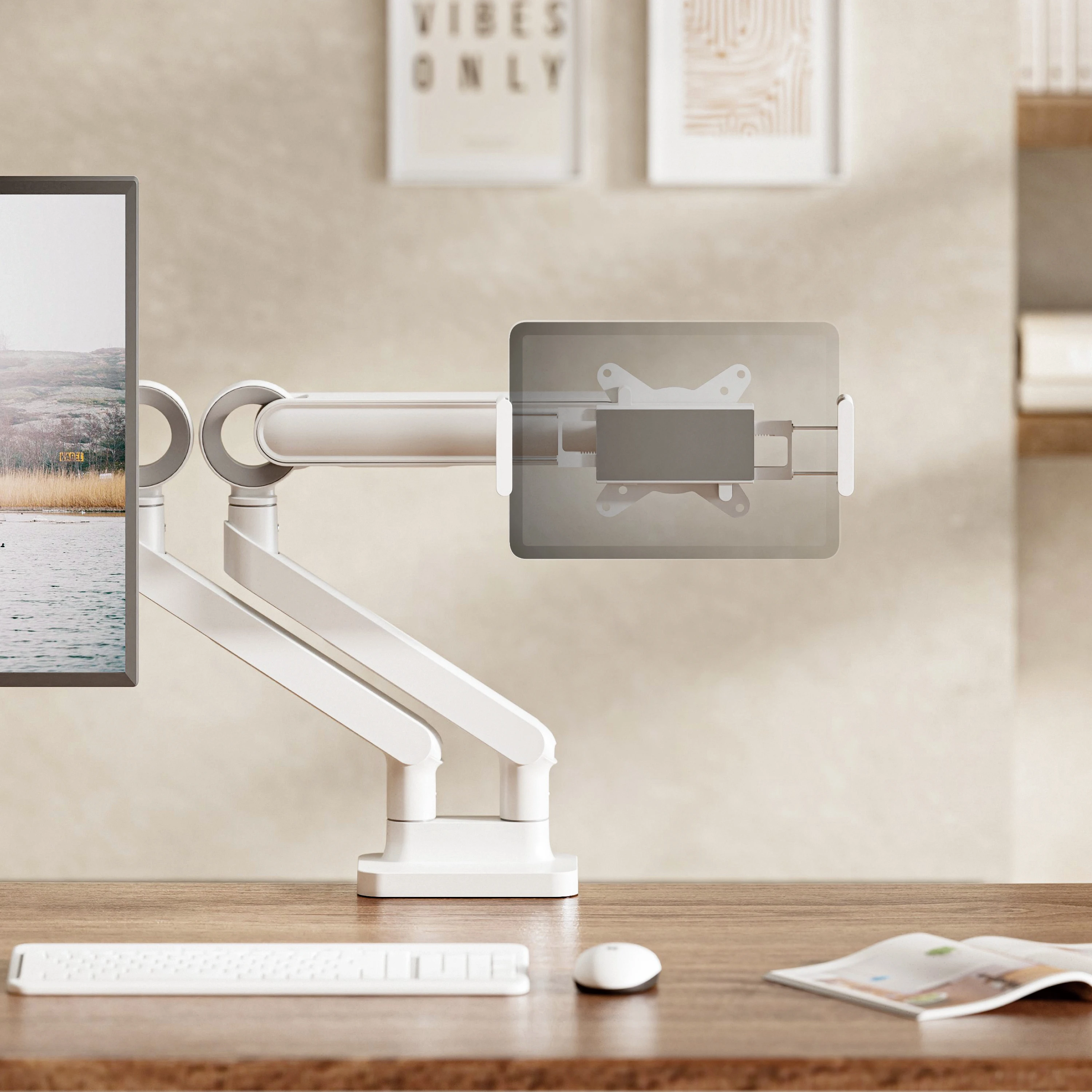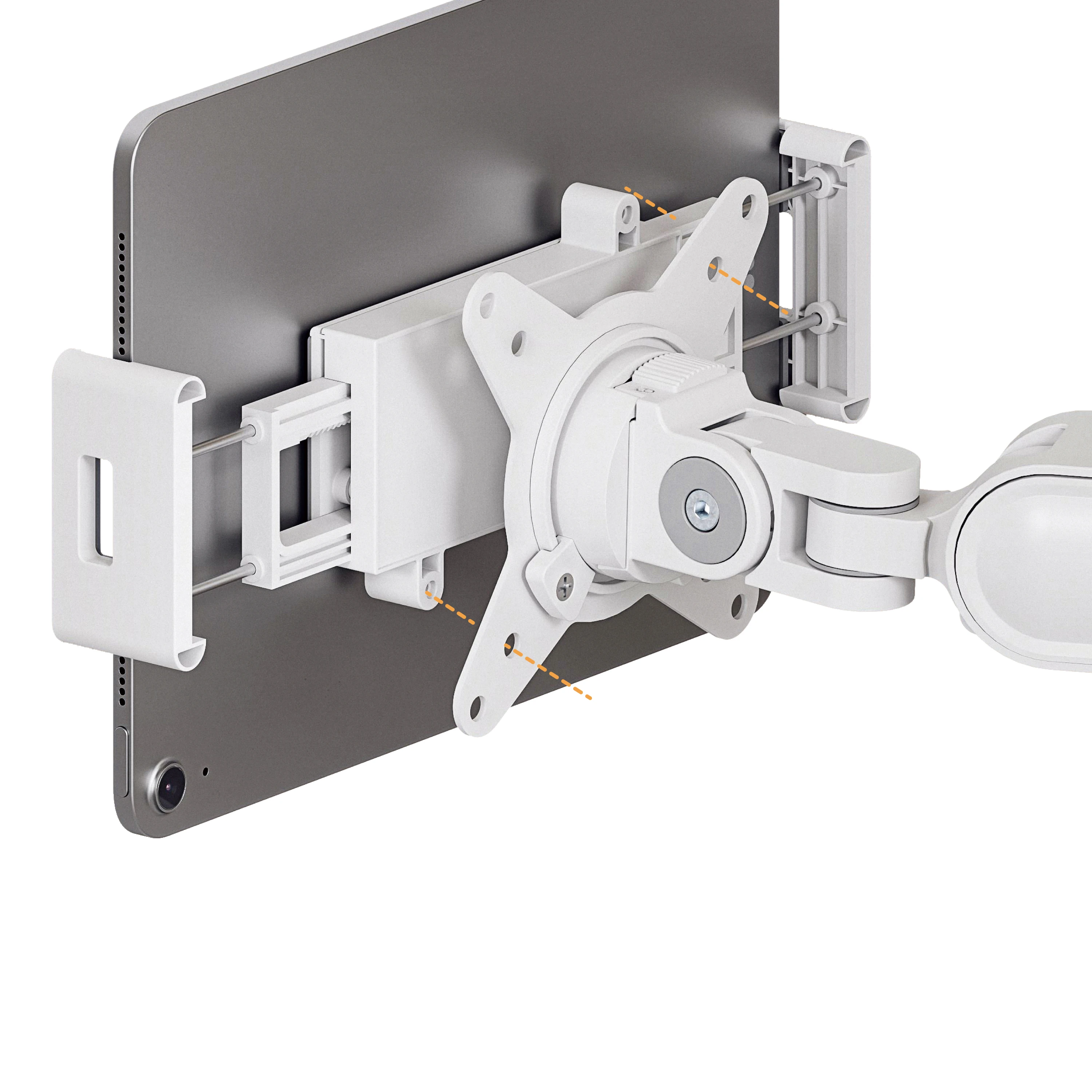 Montaż uchwytu Spacetronik jest niezwykle łatwy dzięki zastosowaniu standardu VESA 75, co pozwala na bezproblemową instalację na każdym ramieniu monitora wyposażonym w ten uniwersalny system mocowania. Dzięki wykorzystaniu dwóch śrub uchwyt można szybko i stabilnie zamocować, co zapewnia nie tylko bezpieczeństwo urządzenia, ale również umożliwia łatwe dostosowanie pozycji tabletu do indywidualnych potrzeb użytkownika. Proces montażu, składający się zaledwie z kilku prostych kroków, jest na tyle intuicyjny, że można go wykonać samodzielnie, bez potrzeby korzystania z pomocy specjalistów, co jest dodatkowym atutem w środowiskach pracy, gdzie czas i efektywność są kluczowe.