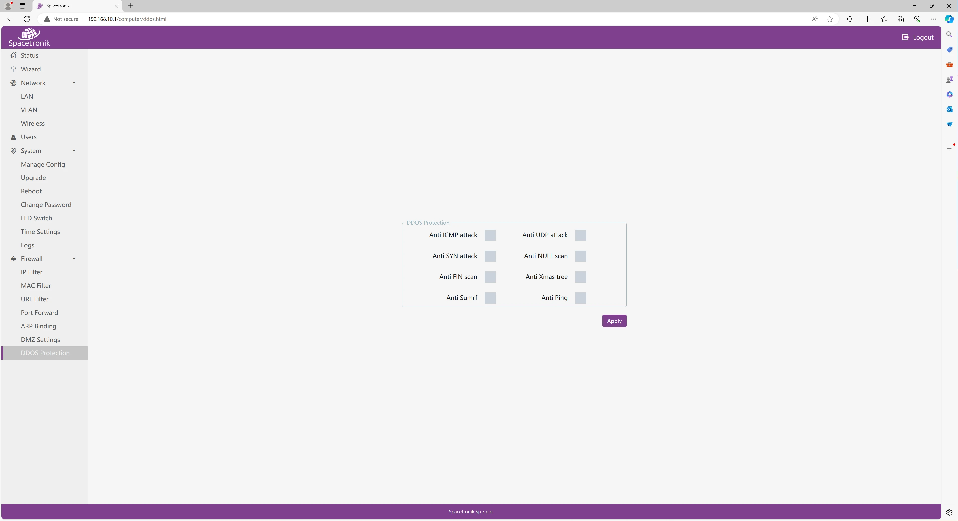 - Adapter zasilający PoE: 48V 0.32A (skonfigurowany)