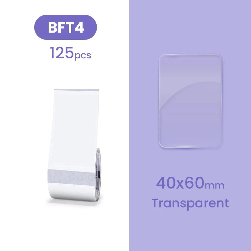 Etykiety do drukarek Niimbot z serii B transparentne. Na rolce znajduje się 125 sztuk w rozmiarze 40x60mm. Etykiety w pozycji wertykalnej (pionowej).