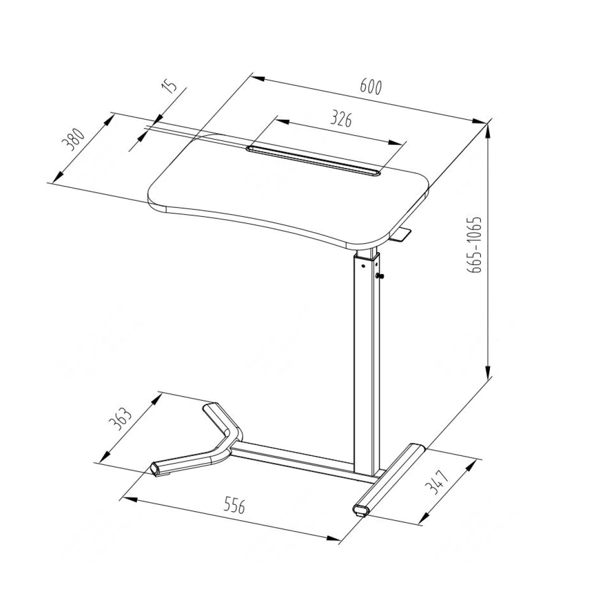 Lekki, stolik z regulowaną wysokością w kształcie litery C