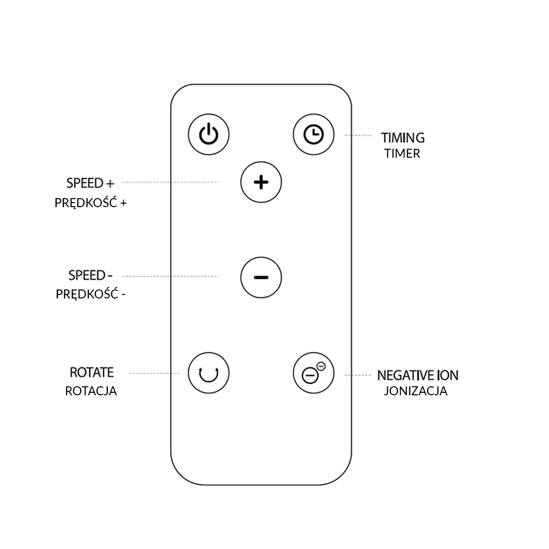 Leżysz wygodnie w łóżku i chciałbyś włączyć wentylator, by się trochę schłodzić? Jednak znajduje się on na drugim końcu pokoju, a Tobie się nie chce wstawać? Specjalnie na taką okazję do wentylatora Spacetronik AirPuff 2 został dołączony wielofunkcyjny pilot. Za jego pomocą jesteś w stanie nie tylko włączyć i wyłączyć wentylator. Możesz również uruchomić i zatrzymać rotację, zmniejszyć i zwiększyć prędkość, ustawić funkcję timera czy też jonizacji. Kontroluj każdy aspekt pracy swojego wentylatora bez wstawania z łóżka. Co, jednak jeżeli w pilocie wyczerpią się baterie, a nie masz żadnych na zmianę w domu? W takim przypadku bezproblemowo możesz kontrolować wentylator za pomocą przycisków znajdujących się w jego podstawie.