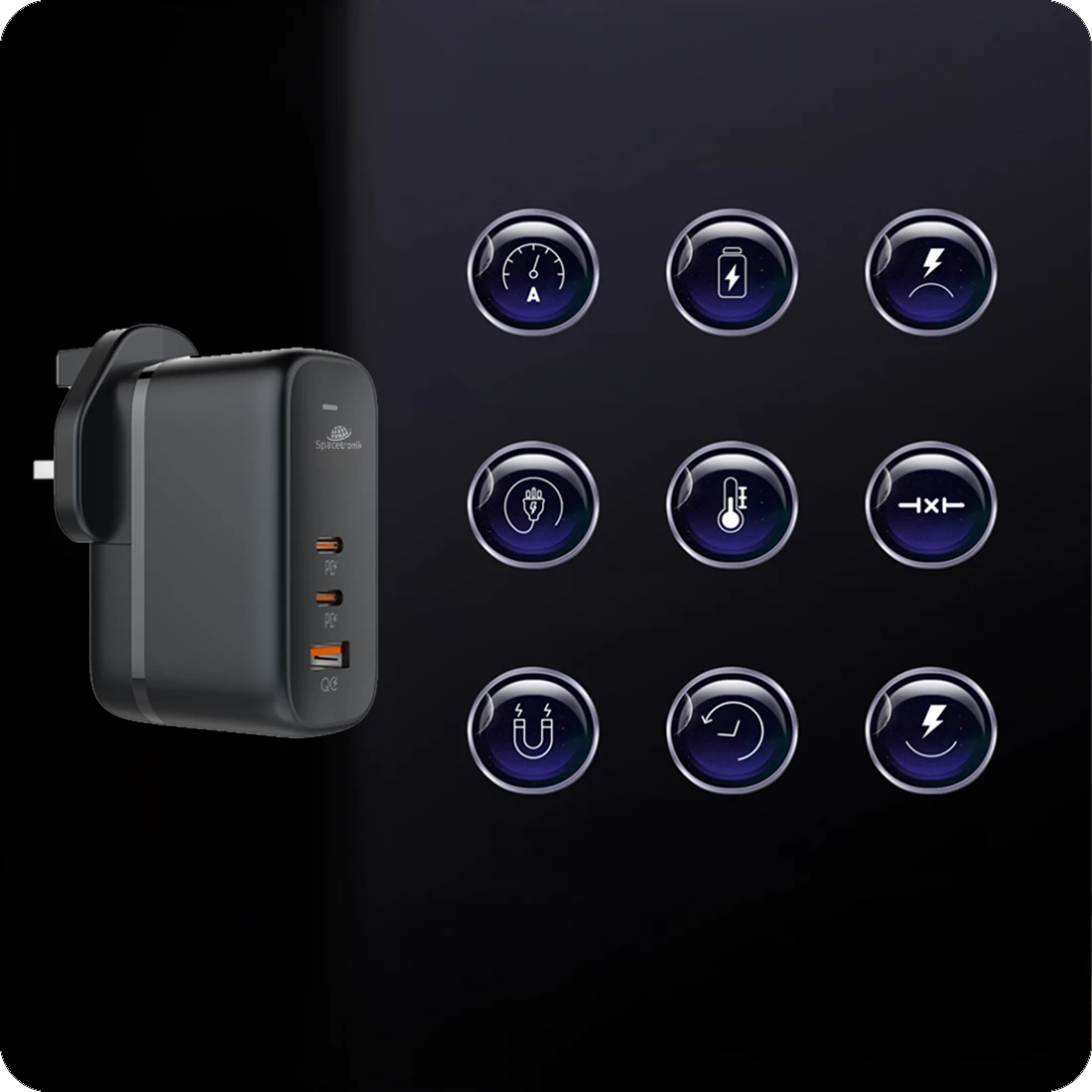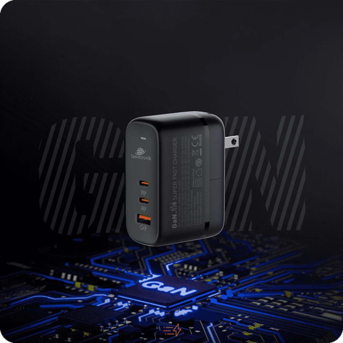 Wiele tradycyjnych ładowarek korzysta z technologii opartej na krzemie. Takie rozwiązanie przez lata było standardem w branży. Jednak wraz z rozwojem technologii, otrzymujemy nowsze, bardziej wydajne sposoby rozwiązywania codziennych problemów. W taki o to sposób powstały ładowarki GaN. Krzem, który jest stosowany w normalnych ładowarkach, został tutaj zastąpiony azotkiem galu. Sprawia to, że są one bardziej kompaktowe, lżejsze, wydajniejsze i pozwalają na pracę w wyższych temperaturach. Dokładnie taka technologia została zastosowana w ładowarce Spacetronik SR101. Przetwarza ona energię elektryczną z mniejszymi stratami w postaci ciepła. Przekłada się to na mniejsze zużycie energii i tym samym mniejsze rachunki za prąd.