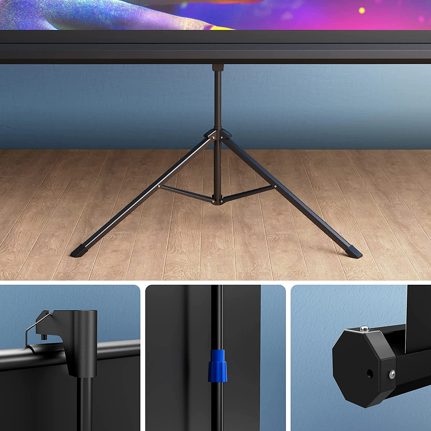 Z naszym ekranem projekcyjnym nie musisz się martwić o stabilność. Dzięki solidnemu trójnożnemu statywowi ekran jest stabilny i bezpieczny w użyciu.