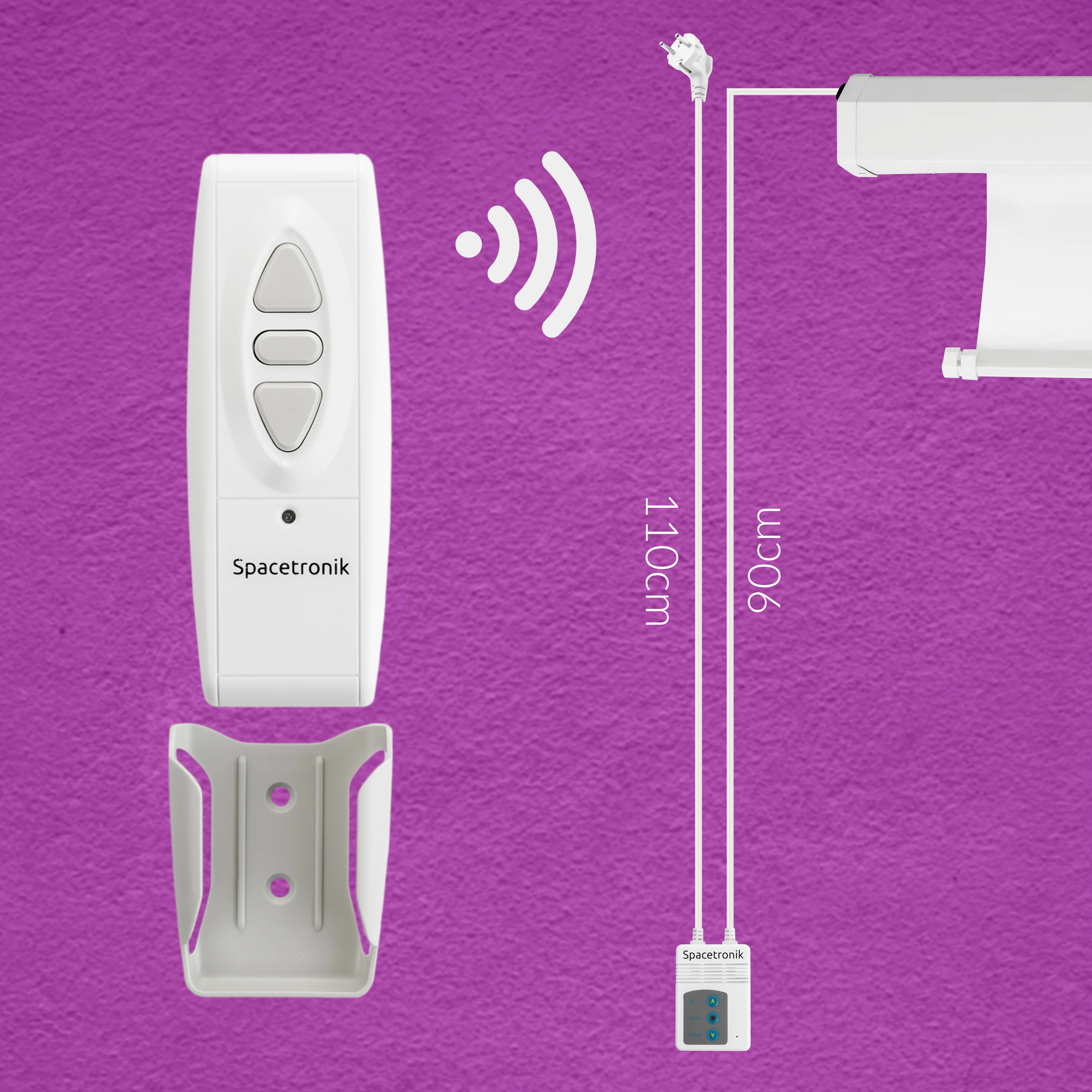 Ekran projekcyjny wyposażony jest w pilot radiowy, który umożliwia wygodne sterowanie z dowolnego miejsca w pomieszczeniu. Dodatkowo, kontroler na kablu zapewnia elastyczność w użytkowaniu i łatwą obsługę. Dzięki temu zaawansowanemu systemowi sterowania, obsługa ekranu jest niezwykle prosta i komfortowa.
