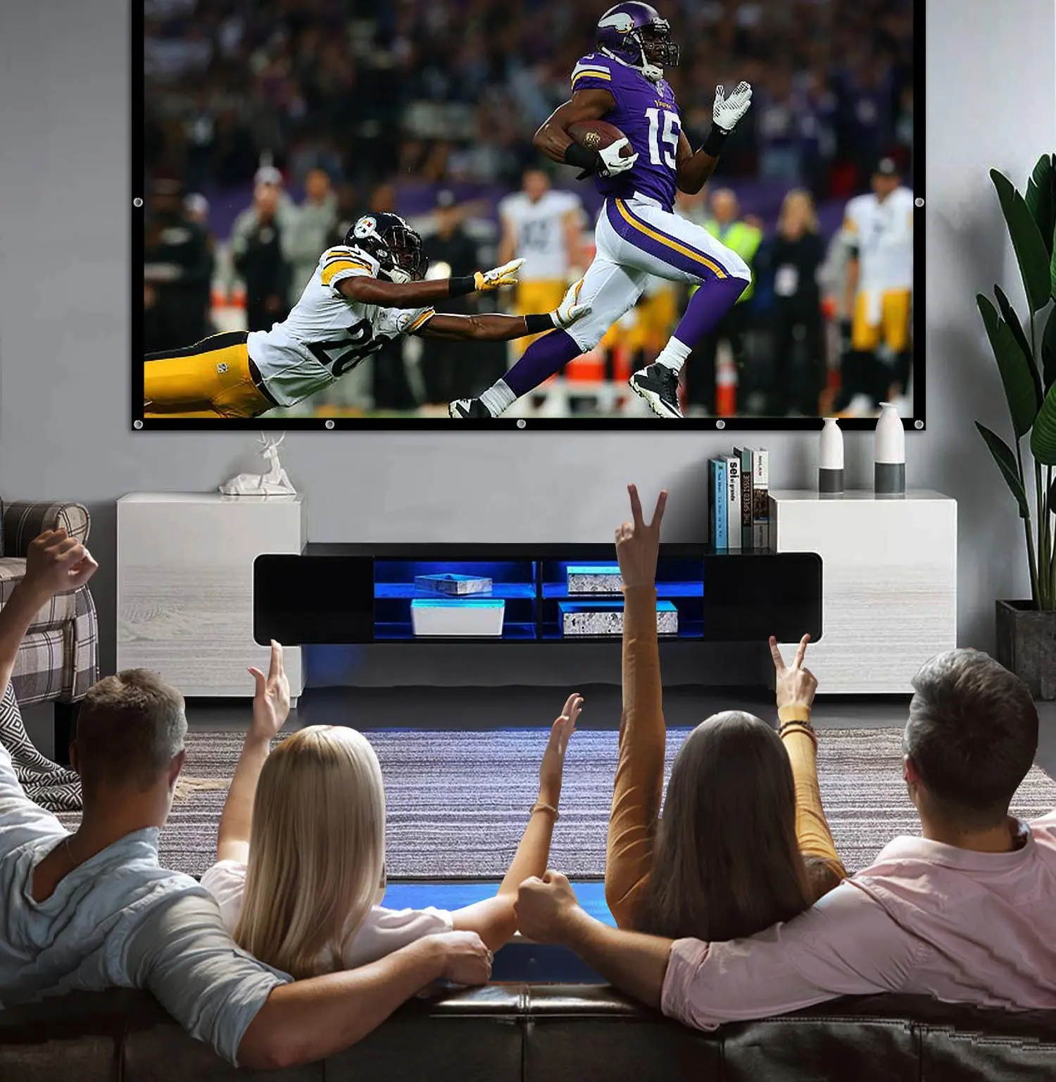 Szybko składany ekran projekcyjny z podwójną stopą o przekątnej 100 cali zapewnia doskonały obraz. Ekran projekcyjny wykonany jest z wysokiej jakości materiału poliestrowego i spandexowego. Oferuje ostre obrazy o wysokiej rozdzielczości, a nawet obsługuje projekcję przednią i tylną. Ekran jest lekki i można go włożyć w załączoną do ekranu torbę do przechowywania, dzięki czemu możesz cieszyć się filmem w dowolnym miejscu.