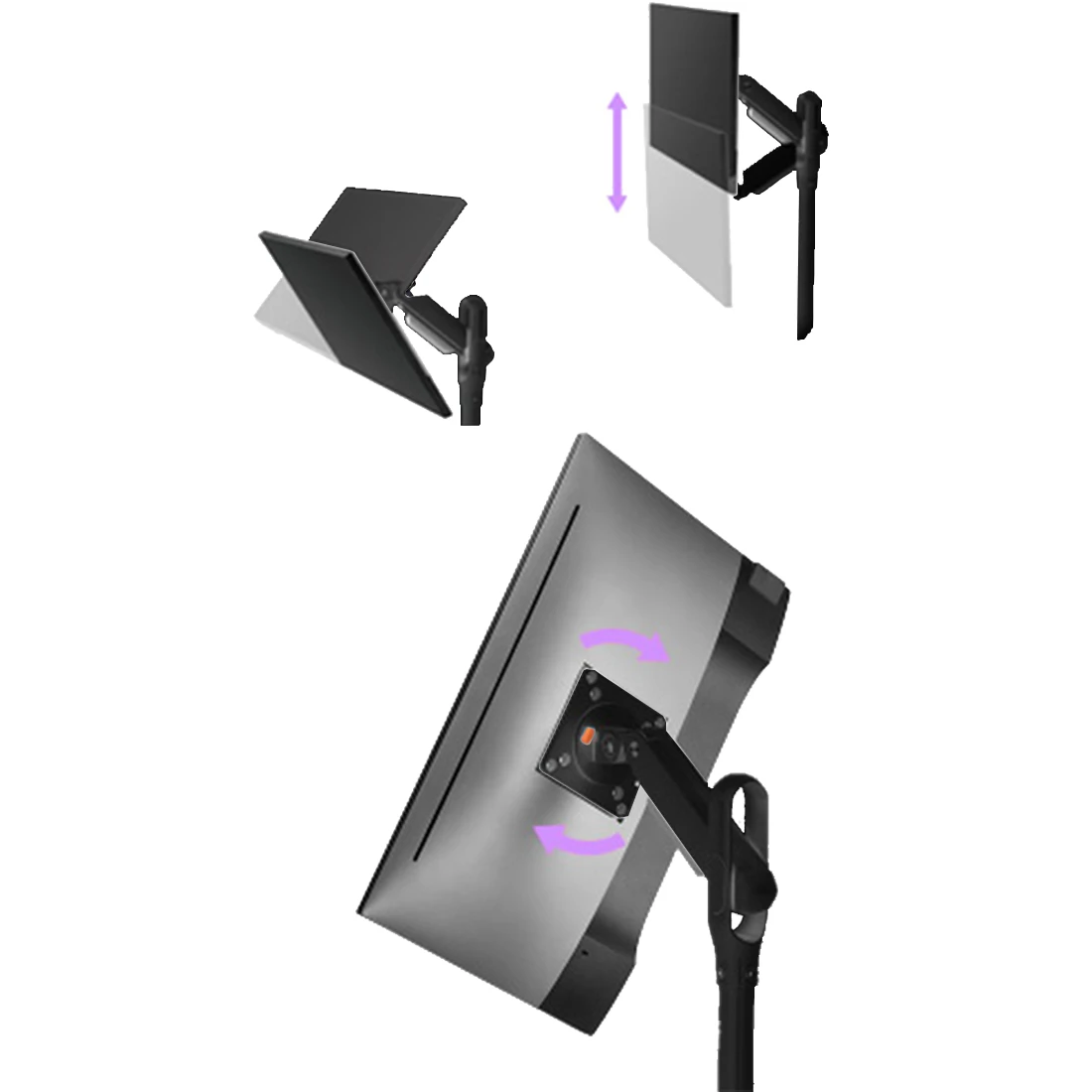 Trzeba się spodziewać, że monitor powieszony na uchwycie SPE-T01B będzie cały czas znajdował się w zmieniających się warunkach świetlnych. To wszystko z uwagi na dużą mobilność, jaką zapewniają jego ukryte w podstawie kółka. Dlatego też ramię uchwytu pozwala Ci na pełną kontrolę ustawienia monitora. Zyskujesz tę możliwość poprzez dostosowanie jego pozycji o 90 stopni w każdym kierunku. Dzięki temu będziesz mógł zawsze dowolnie dopasować położenie ekranu. Dostosujesz je idealnie do aktualnie padającego na monitor światła.