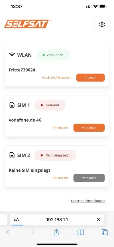 Router SELFSAT MWR 5550 posiada dwa sloty na karty SIM, z których każdy może zostać wyposażony w kartę SIM dowolnego operatora. Można na przykład używać dwóch kart SIM od różnych dostawców i zmieniać sieci, jeśli jeden z nich nie ma zasięgu sieci. Po odpowiedniej konfiguracji możesz podłączyć swoje urządzenia końcowe bezprzewodowo poprzez WLAN lub przewodowo poprzez LAN do routera MWR 5550 i korzystać z łącza internetowego.